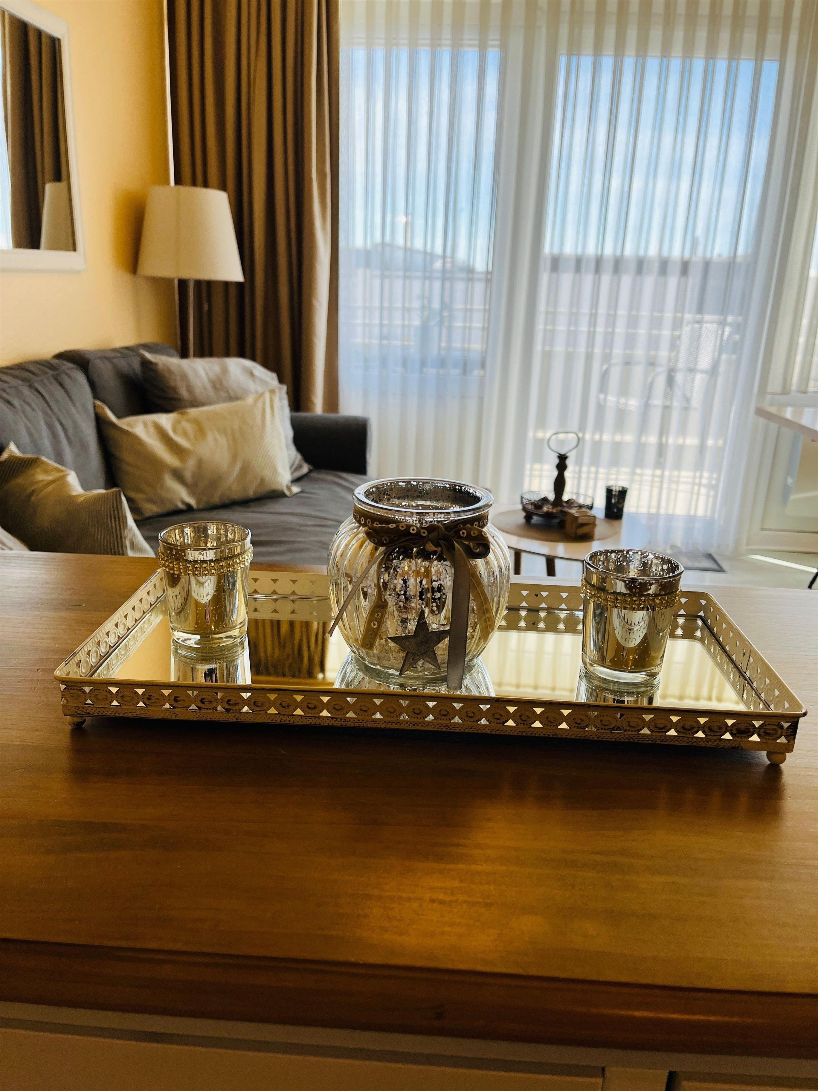 Die Räume sind hell und modern im maritimen Stil eingerichtet. Genießen Sie die Abende mit einem Glas Wein auf Ihrem Balkon.