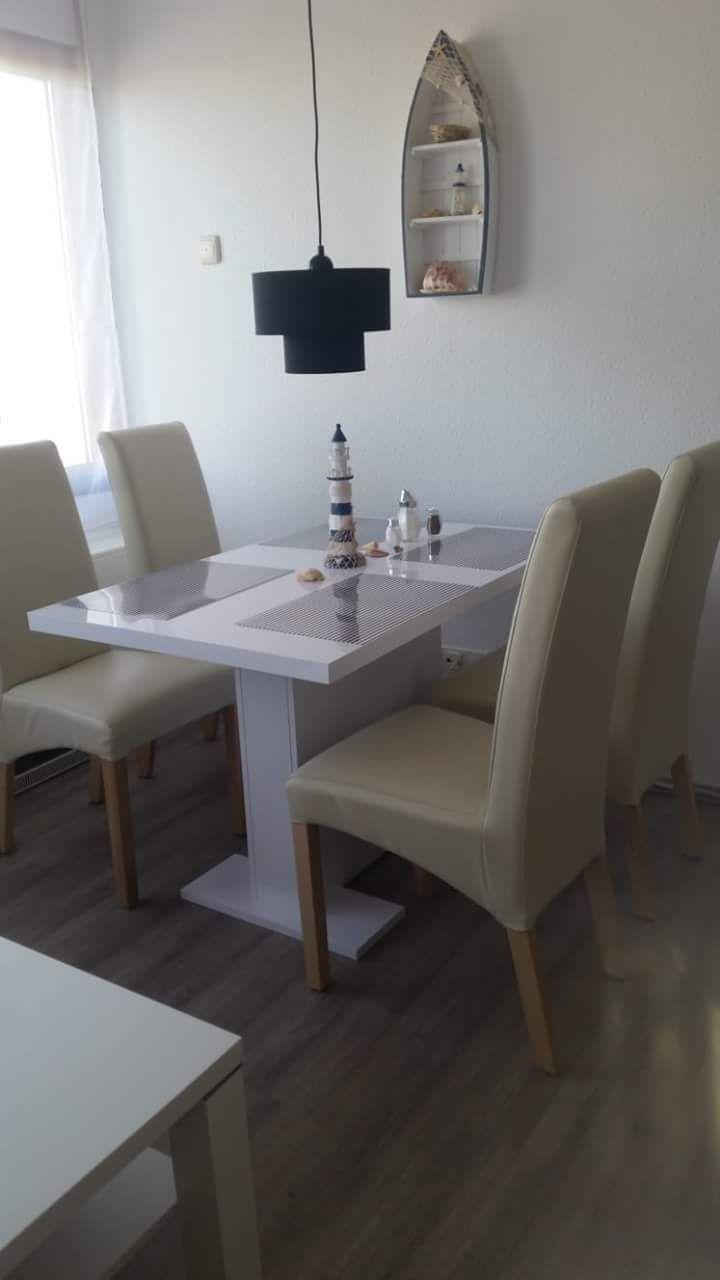 Helle, modern eingerichtete Ferienwohnung mit schöner Küchenzeile. Geschirrspüler und Microwelle vorhanden.
