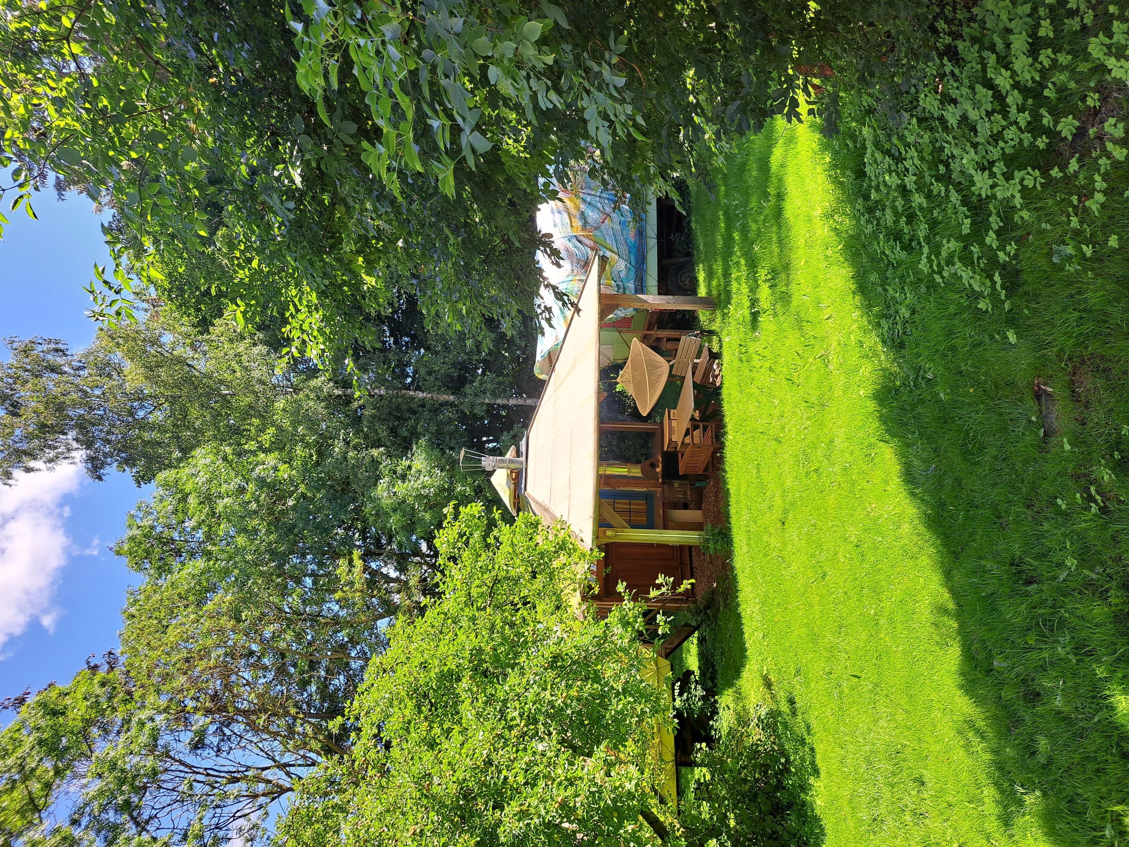 Rustikaler Bungalow mit drei kreativen Wagen bietet Naturerlebnis und Ruhe in Carinerland.
