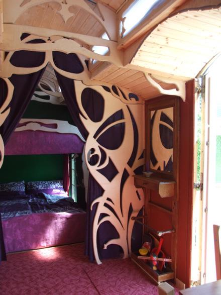 Da muss es richtig schön und gemütlich sein. Alles da was man zu Leben braucht. Küche, Bad, Schlafzimmer, die gute Stube auf engstem Raum. Ein wenig Kitsch, viel Plüsch, es schwingt zwischen rot und blau - etwas mystisch.