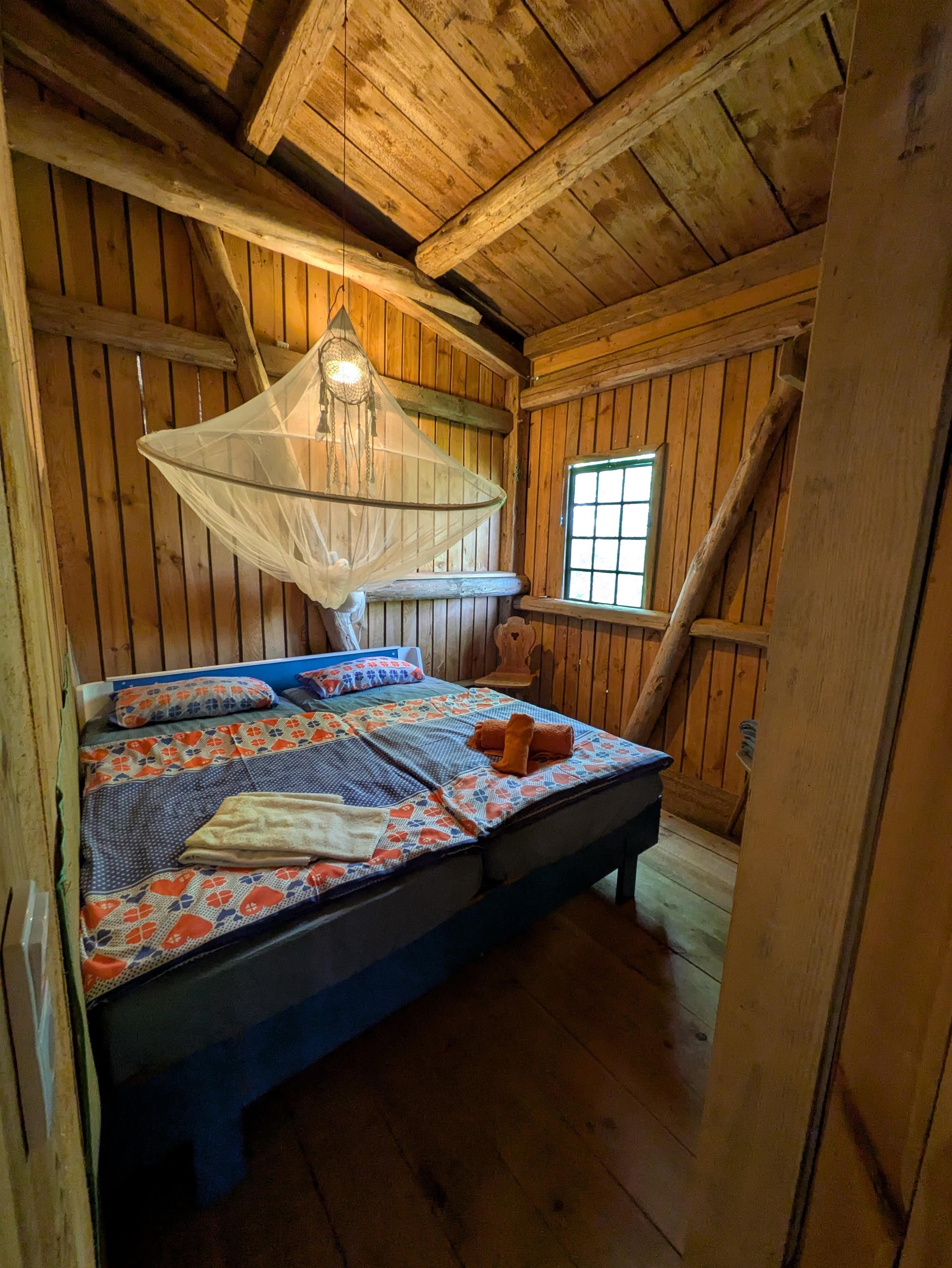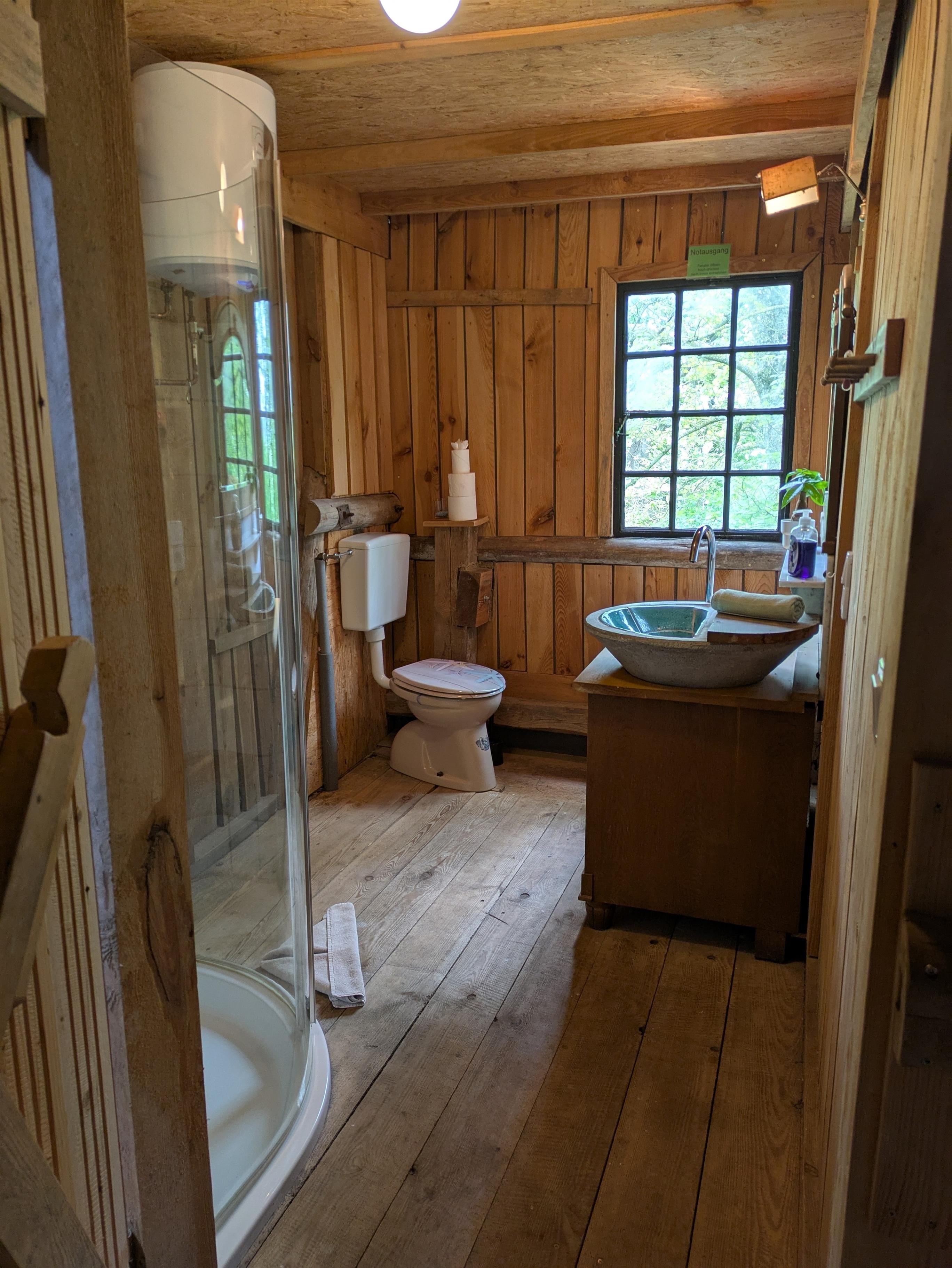 Die Wände? Bestehen aus alt belassenen Brettern. Zwischen denen sind Schlitze. Ja, Schlitze! Das ist unser einzigartiger, natürlicher Luftaustausch. Genießt die Geräusche von draußen und das leicht mulmige Gefühl, nicht ganz allein zu sein. Das ist kein Mangel, das ist atmosphärisches 4D-Erlebnis!