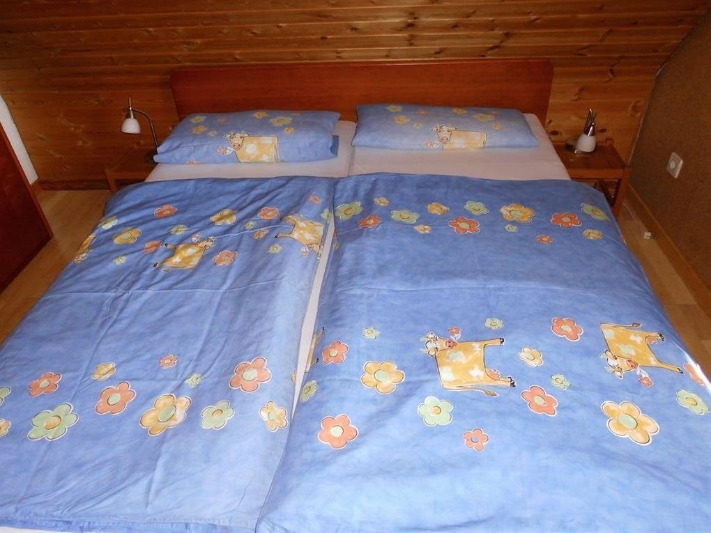 Die Ferienwohnung (70 qm) befindet sich im Obergeschoss des Hauses und hat einen sep. Eingang mit großem Balkon und Markise. 3 Schlafräume stehen für 5 Personen zur Verfügung, davon zwei mit Doppelbett und 1 mit Einzelbetten. Ferner sind 2 Bäder mit Dusche, 1 Dusche, 1 mit Wannenbad vorhanden, sowie eine Wohnküche und ein Wohnzimmer. Durch die Holzfußböden bzw. gefliesten Bäder und kochbare Bettdecken ist die Einrichtung allergikerfreundlich.