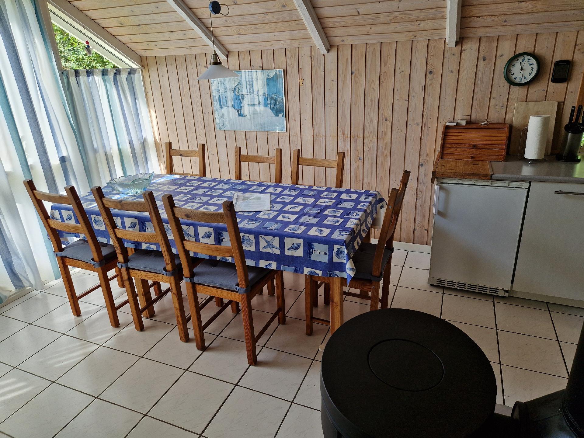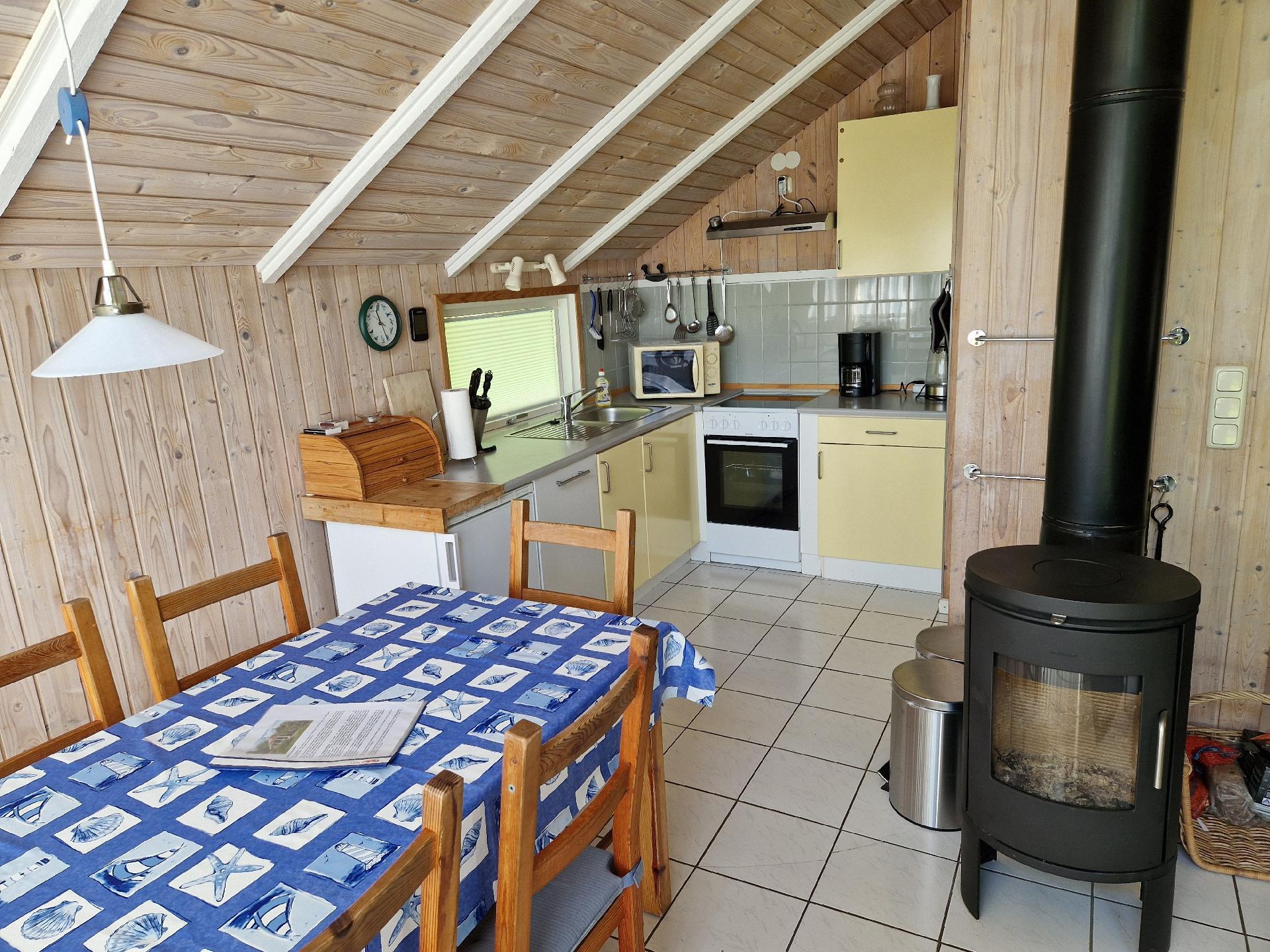 Das dänische Ferienhaus wurde 1995 gebaut und hat ca. 60 qm Wohnfläche. Alle Räume sind weiß gefliest. Die Räumlichkeiten sind zweckmäßig eingerichtet und teilen sich auf in ein Schlafzimmer mit Doppelbett, ein Schlafzimmer mit zwei Einzelbetten, ein Alkoven mit Schlafgelegenheit für eine Person (kleiner Raum mit Bett und Nachttisch), einen Wohnraum, einer Essecke mit großem Esstisch, sowie Farbfernseher, Sat-TV, Radio, CD, DVD. Die voll eingerichtete Küche ist u.a. mit Geschirrspülmaschine und Mikrowelle ausgestattet, das Bad hat eine Dusche und WC. Ferienhaus und Garten sind kinderfreundlich eingerichtet. Das Haus ist winterfest mit Elektroheizung in allen Räumen. Gemütlich wird es aber erst durch den in der Mitte des Wohnbereichs stehenden Kaminofen, der sehr leicht zu beheizen ist.