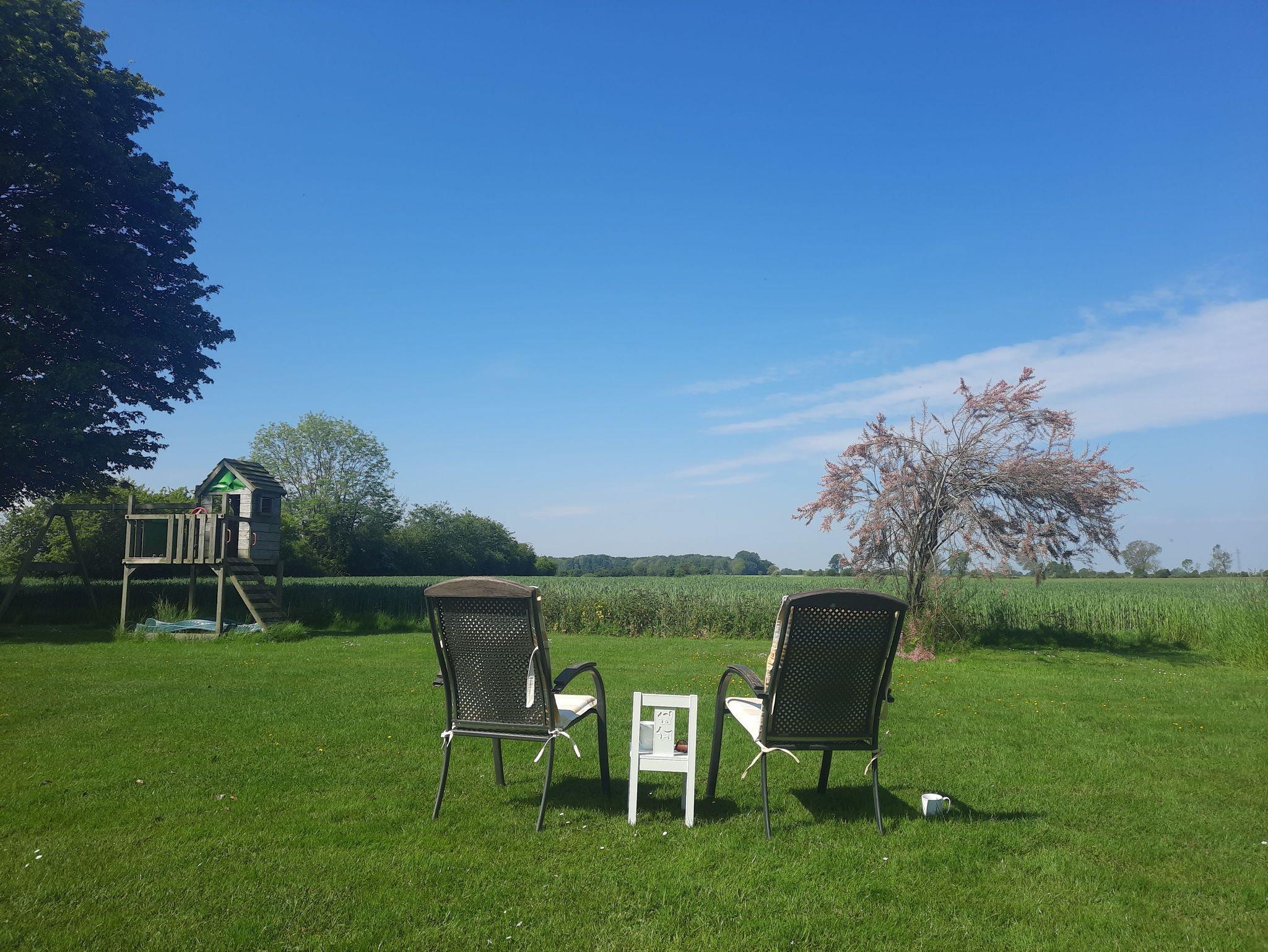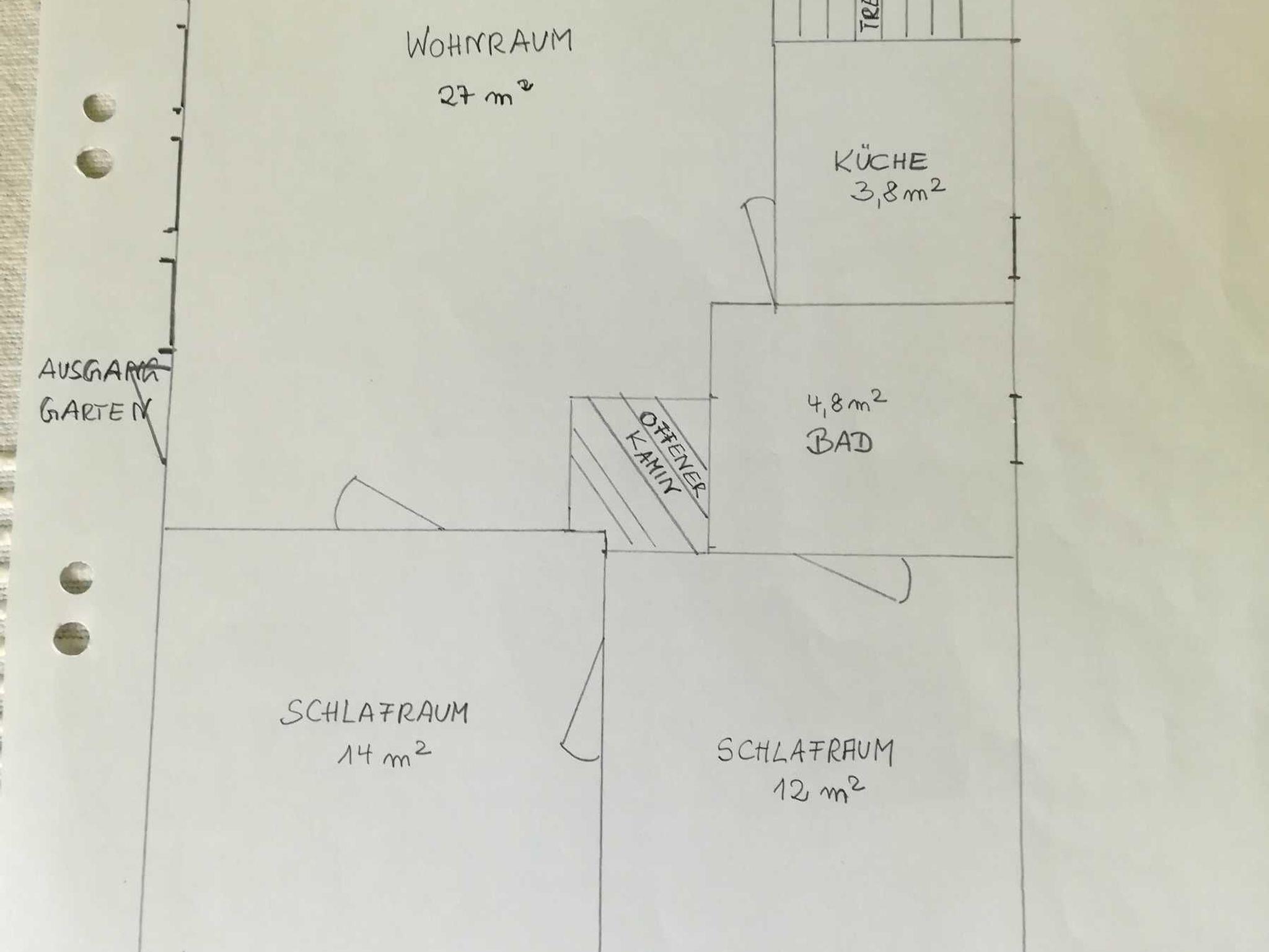Das ca. 2000 m² große Grundstück und nicht eingezäunt und bietet einen herrlichen Blick über angrenzende Felder. Aufgrund der abgelegenen Lage verfügt das Haus über kein W-LAN. Der reguläre Netzempfang ist in Ordnung. Auf dem Grundstück ist ausreichend Platz für 2-3 Autos.