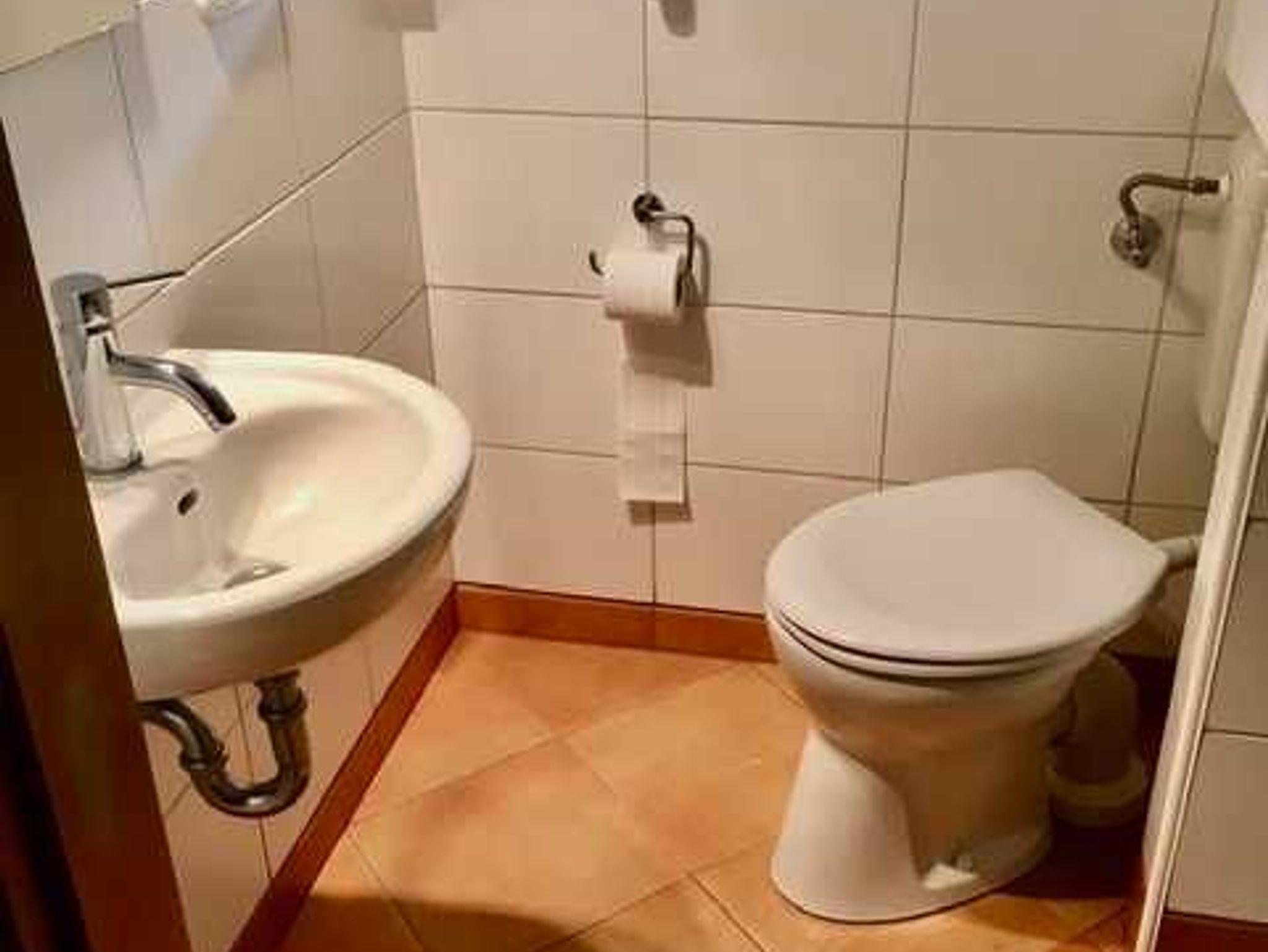 Das zweite, sehr kleine Bad mit Dusche befindet sich in der 1. Etage. Die 1. Etage ist über eine sehr steile Stiege erreichbar.