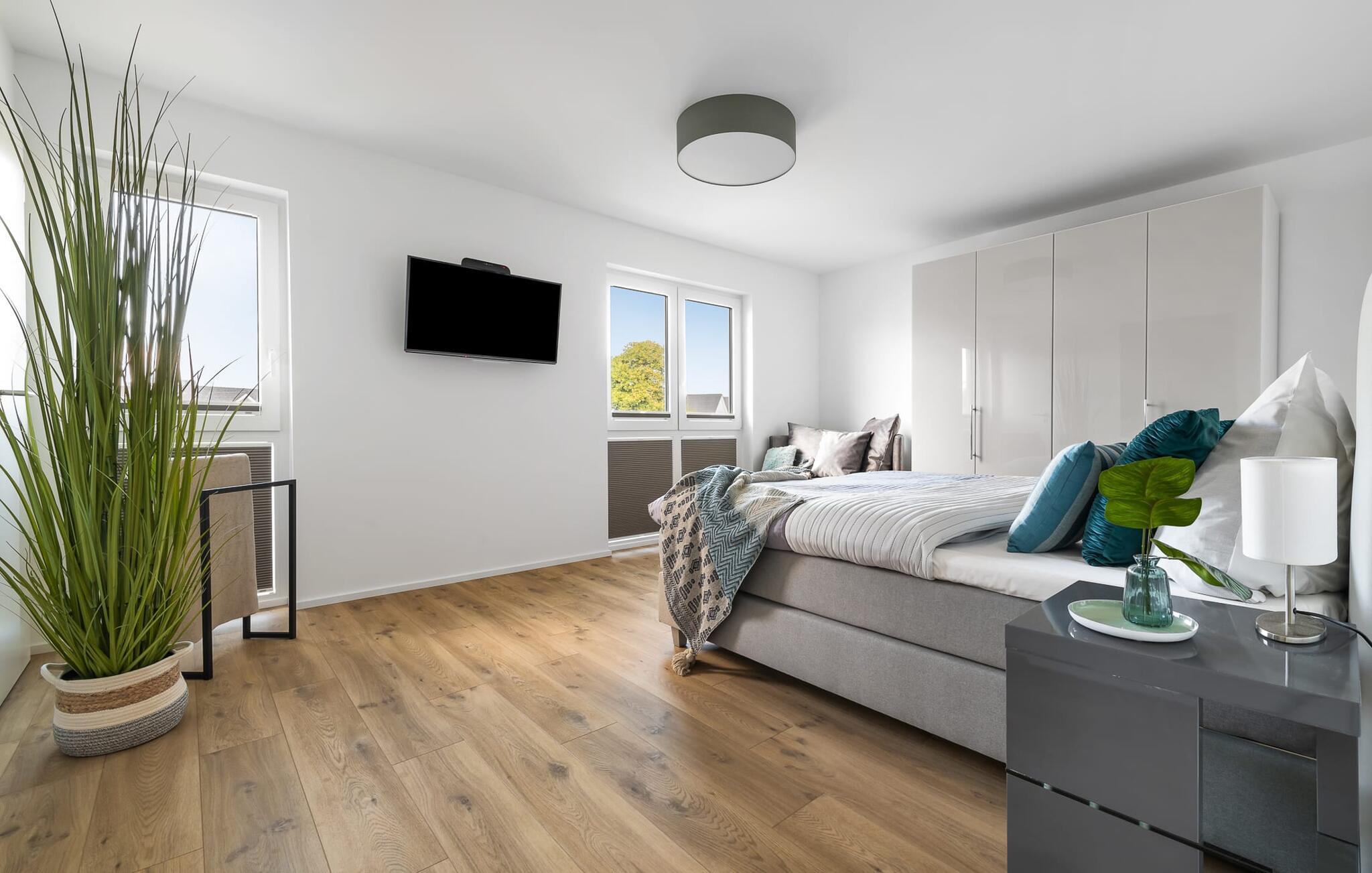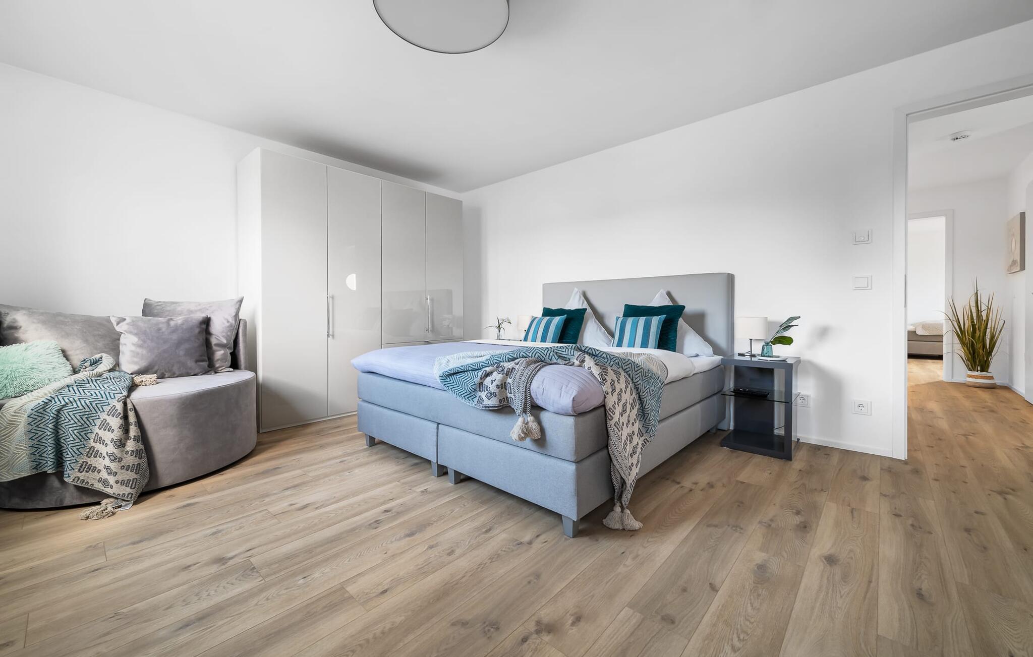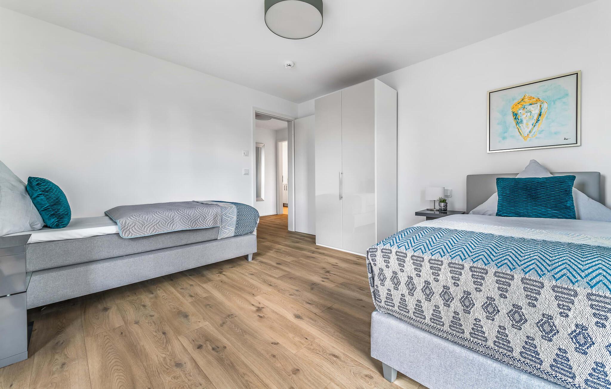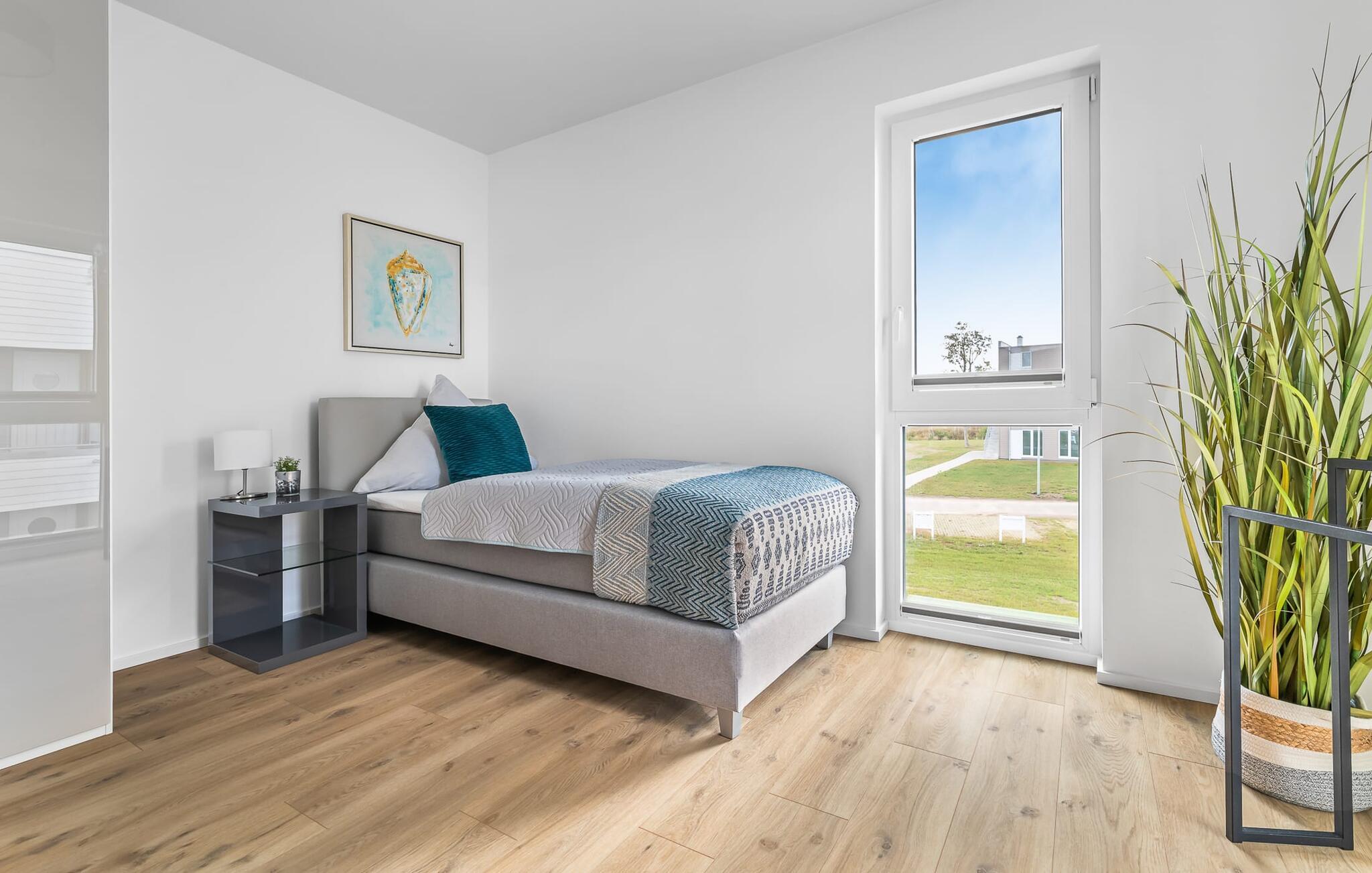 Beim Betreten der Ferienwohnung im ersten Obergeschoss, beginnt vom ersten Moment an der Urlaub. Es eröffnet sich direkt der Ruhebereich der Wohnung mit insgesamt drei Schlafzimmern. Egal für welches ihr euch entscheidet, erholsamer Schlaf ist euch sicher. Das Hauptschlafzimmer ist mit Doppelbetten sowie einem Fernseher ausgestattet. Das zweite und dritte Schlafzimmer bieten mit bequemen Einzelbetten vier weitere Schlafmöglichkeiten.