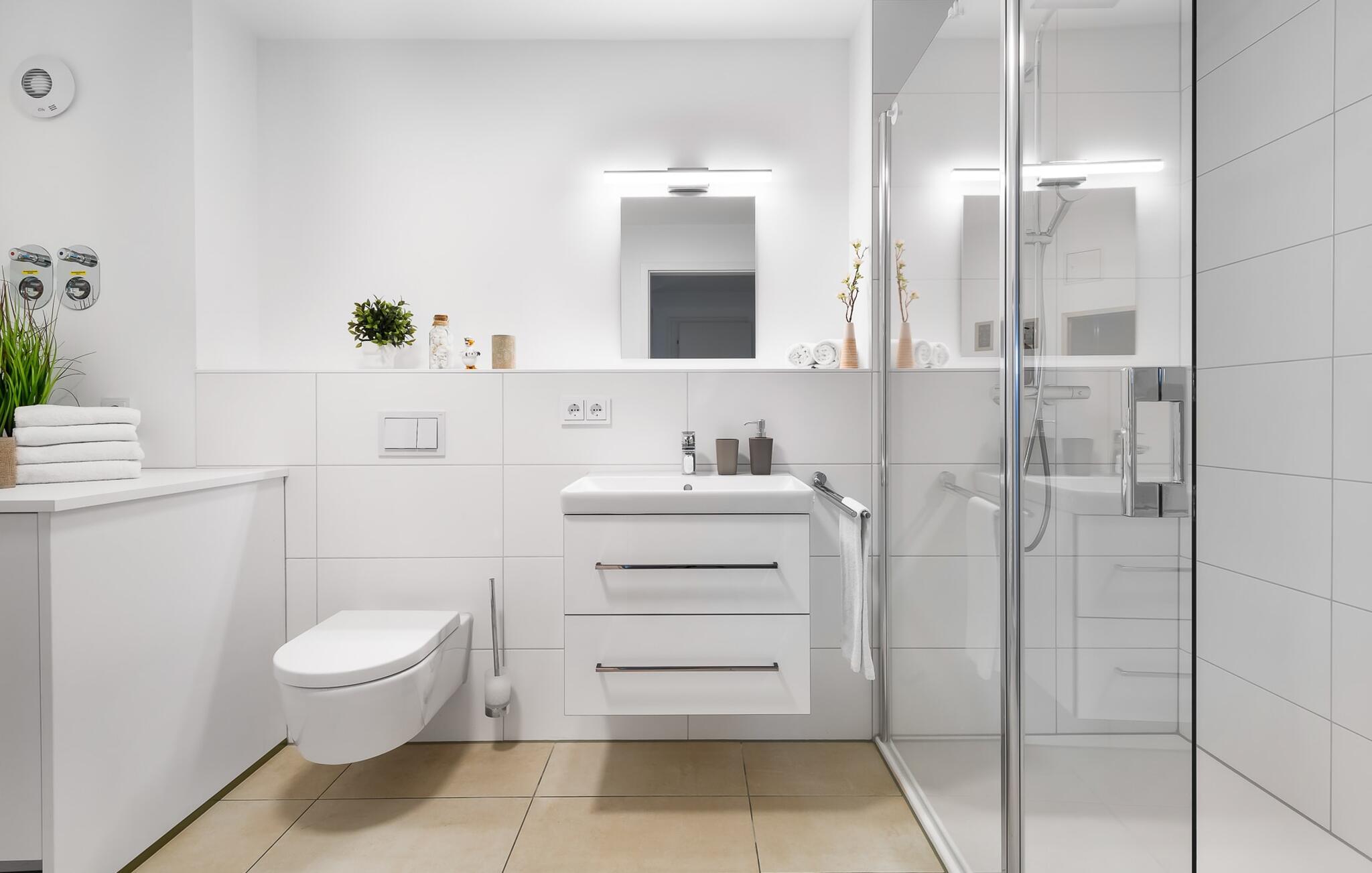 - WC mit warmem und kaltem Wasser, Dusche und Badewanne