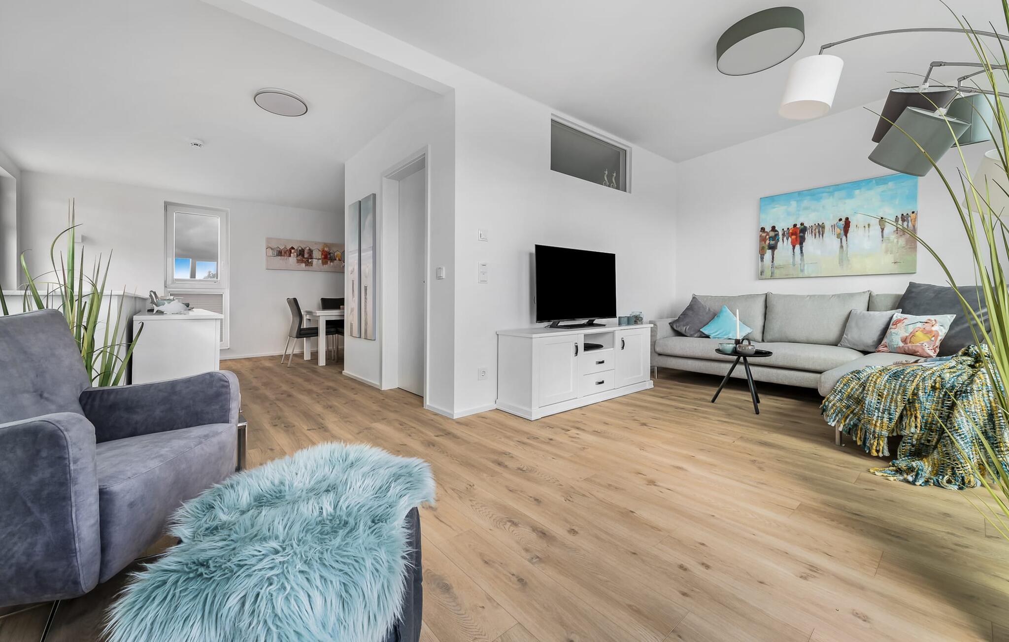 Und wenn die Sonne lockt gelangt ihr vom Wohnbereich auf die großzügige Terrasse mit Grill und Blick gen Ostsee.