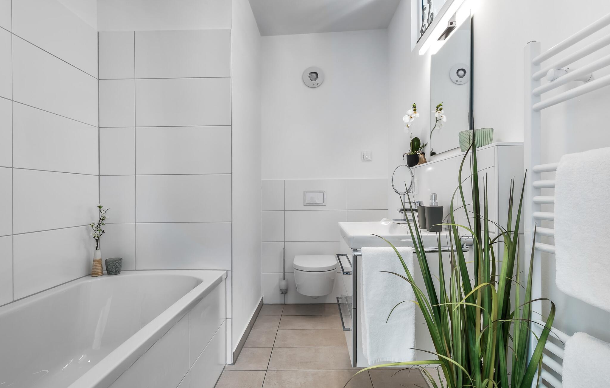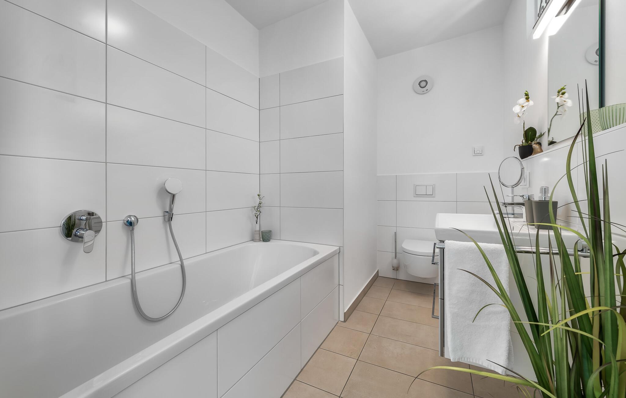 Ein zweites Badezimmer mit zusätzlichem WC, Waschbecken und einer Badewanne bietet genug Raum und Ausweichmöglichkeiten für mehrere Personen und rundet die Ausstattung dieser Wohlfühloase ab.