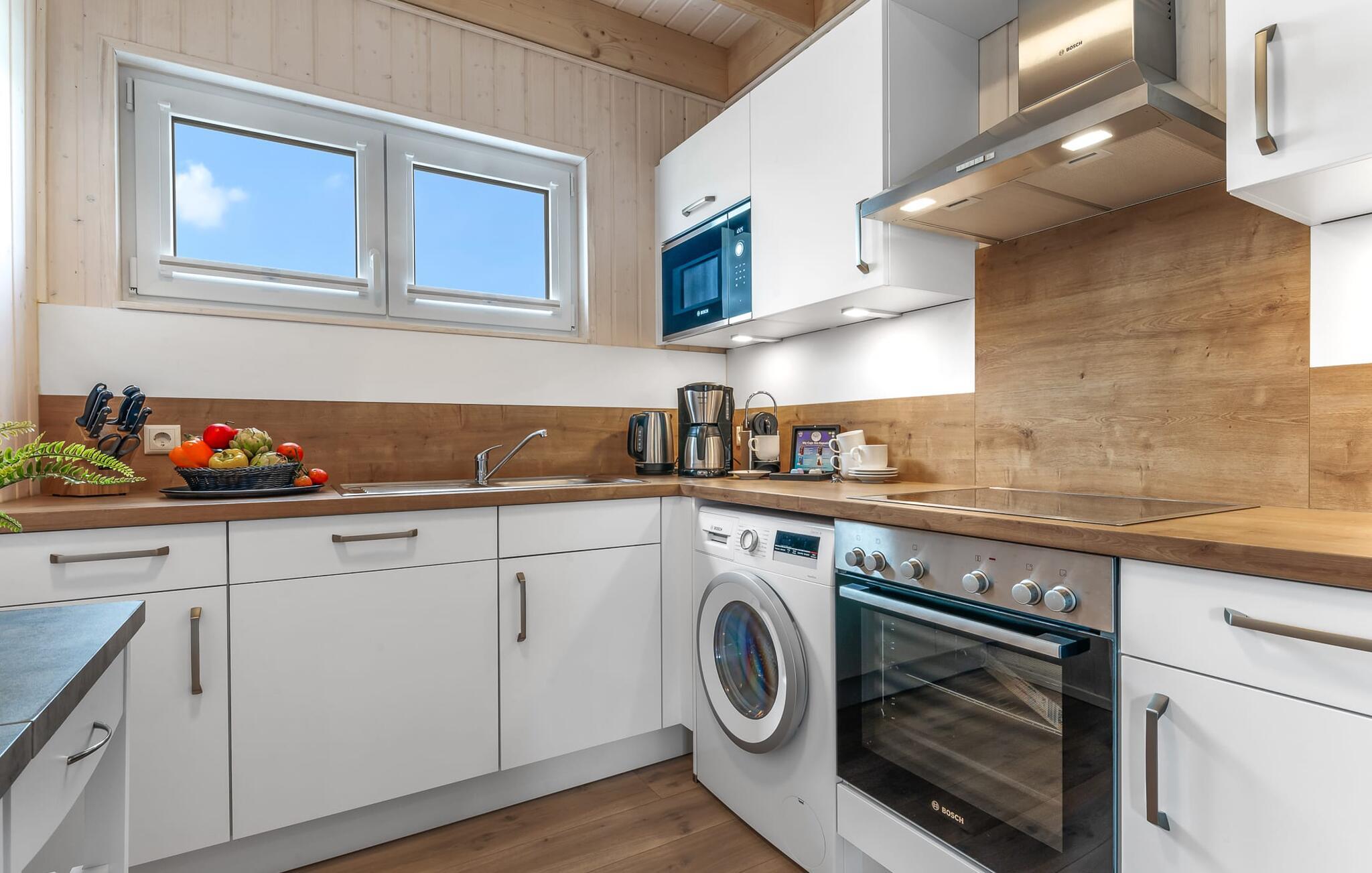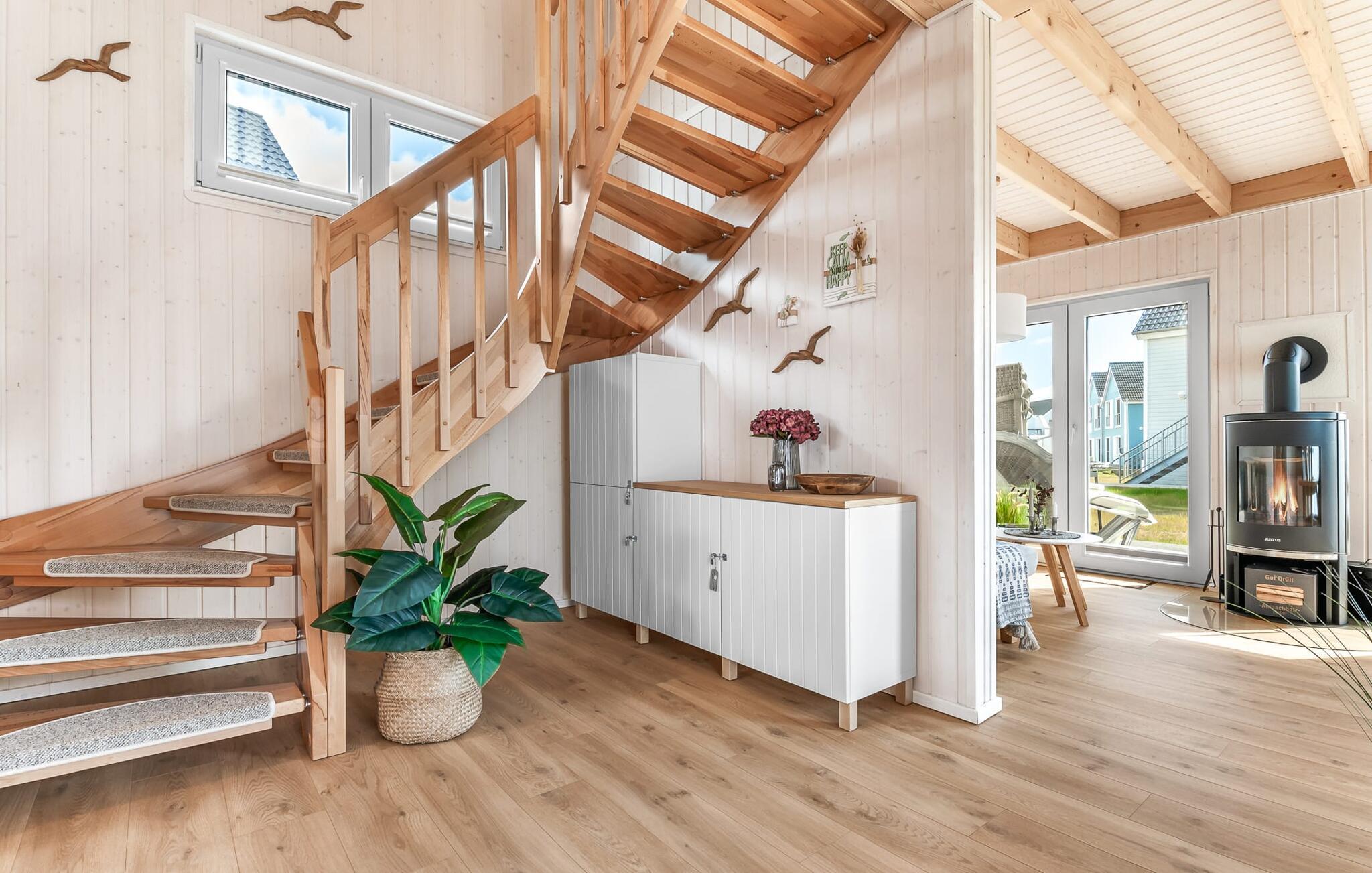 Beim Betreten des Ferienhauses beginnt vom ersten Moment an das Urlaubsfeeling. Der offen gestaltete Wohn- und Essbereich im Erdgeschoss stellt den Mittelpunkt des Ferienhauses dar. Ob bei gemeinsamen Mahlzeiten oder geselligen Spieleabenden - hier kommt die ganze Familie zusammen, um den gemeinsamen Urlaub zu genießen. Auch die Küche ist perfekt ausgestattet und lässt Hobbykoch-Herzen höher schlagen. Auch eine Nespresso-Maschine steht für den morgendlichen Kaffee bereit.
