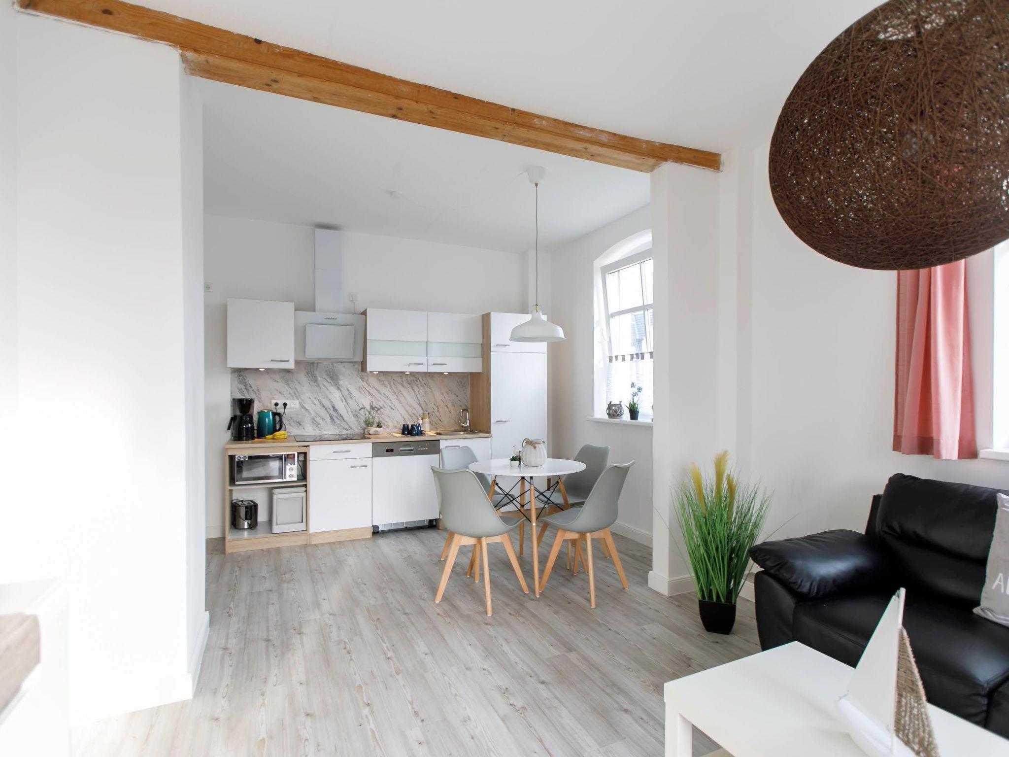 Das HausOstseewelle liegt 150m vom Strand entfernt. Die Ferienwohnung 9 liegt im 1. Obergeschoss mit Balkon. Die Wohnung hat ein Schlafzimmer ( Ehebett 180x200 ), Kinderzimmer mit 2x Einzelbett (90x200) und ein Wohn- Esszimmer. Die Küche ist im Wohnzimmer integriert, und ist mit Kaffeemaschine, Toaster, Eierkocher, Küchengeräten, Mikrowelle, Geschirr, Töpfen, Geschirrspüler und einen Vierflammen Ceranfeld ausgestattet. Die Küche hat keinen Backofen. Zur Ausstattung gehören ein Radio und ein LCD-DVBT- TV. Maximal zwei Hunde sind erlaubt, ansonsten keine anderen Haustiere erlaubt. Das Haus hat einen Stellplatz pro Ferienwohnung.