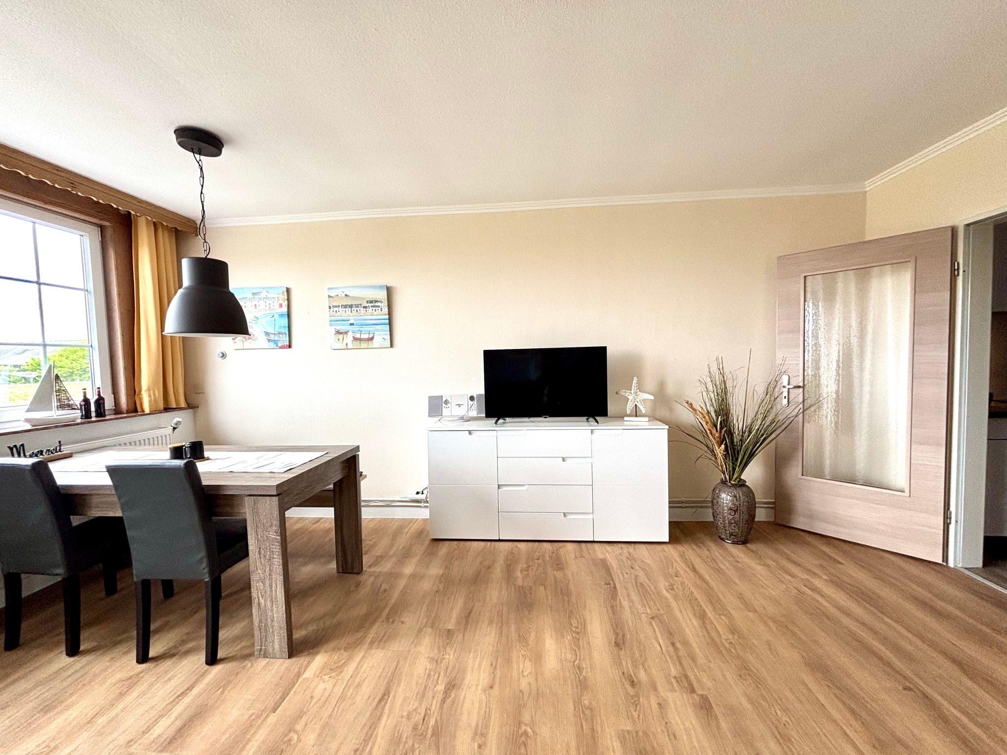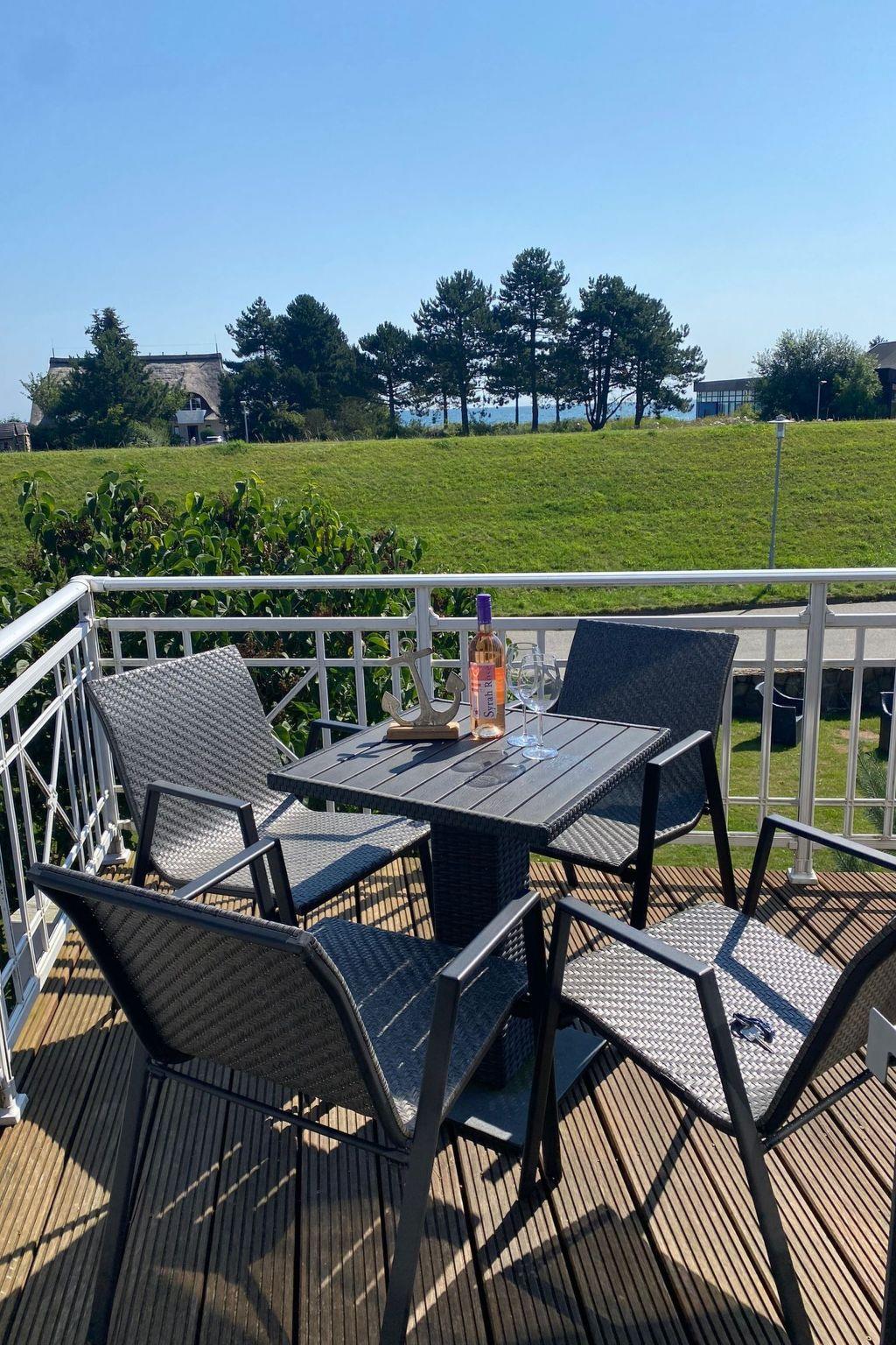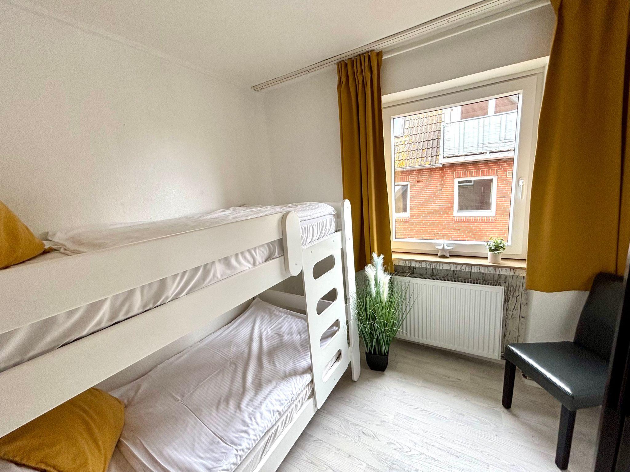 Das HausOstsee liegt in erster Lage, ca. 80m vom kurtaxepflichtigen Strand entfernt. Die Wohnung F ist im ersten Stock und hat einen Balkon mit Meerblick und Gartenmöbeln. Die Wohnung verfügt über ein Schlafzimmer (ein Ehebett, 1,60 x 2 m), ein weiteres Zimmer mit Etagenbett und über einen großen Wohn- und Esszimmer-Bereich. Die Küche ist mit Filterkaffee-Kaffeemaschine, Toaster, Küchengeräte, Geschirr und Töpfen ausgestattet. Die Küche hat kein Backofen!! Zur Ausstattung gehören Radio und LCD-DVBT- TV.