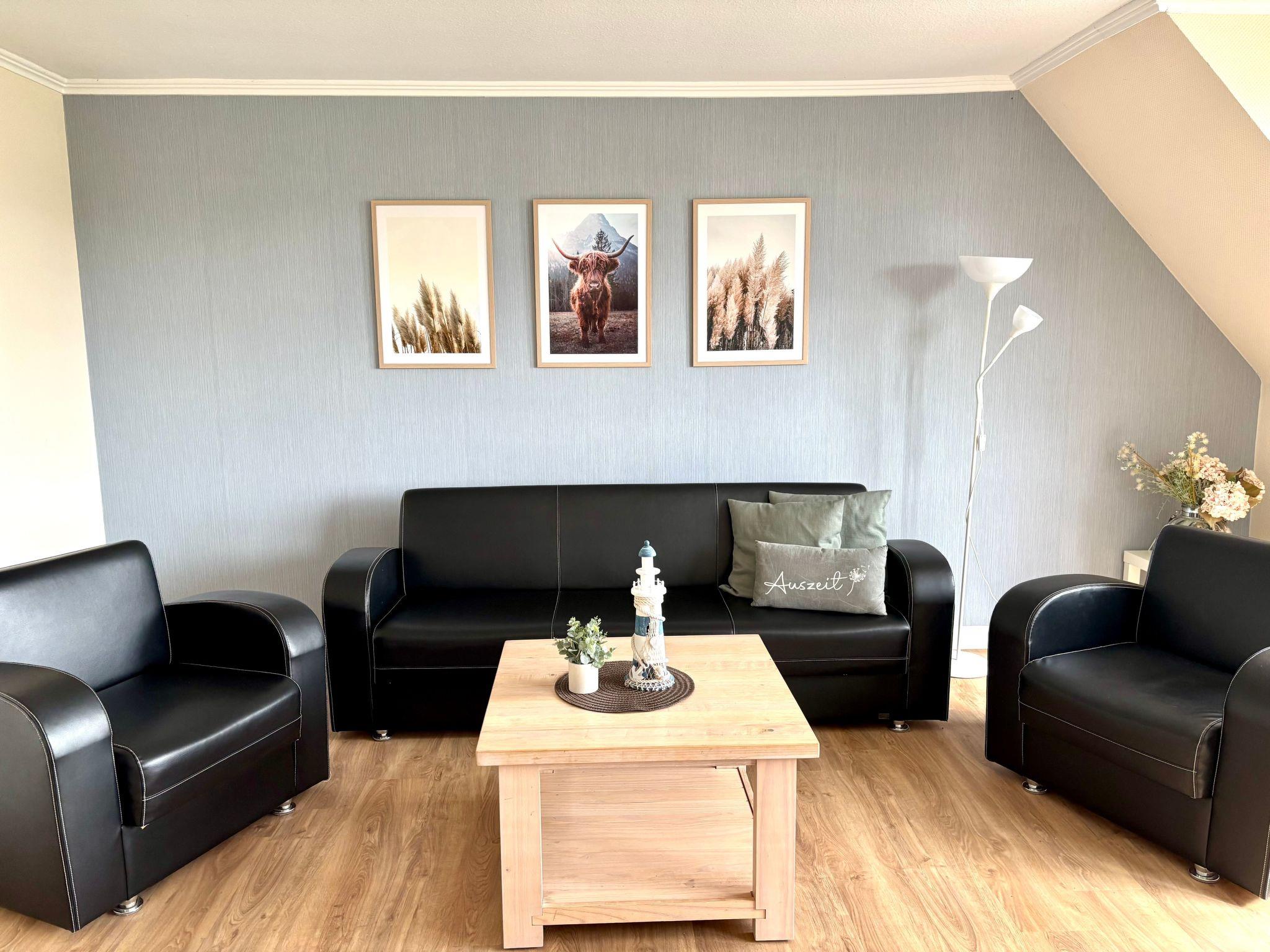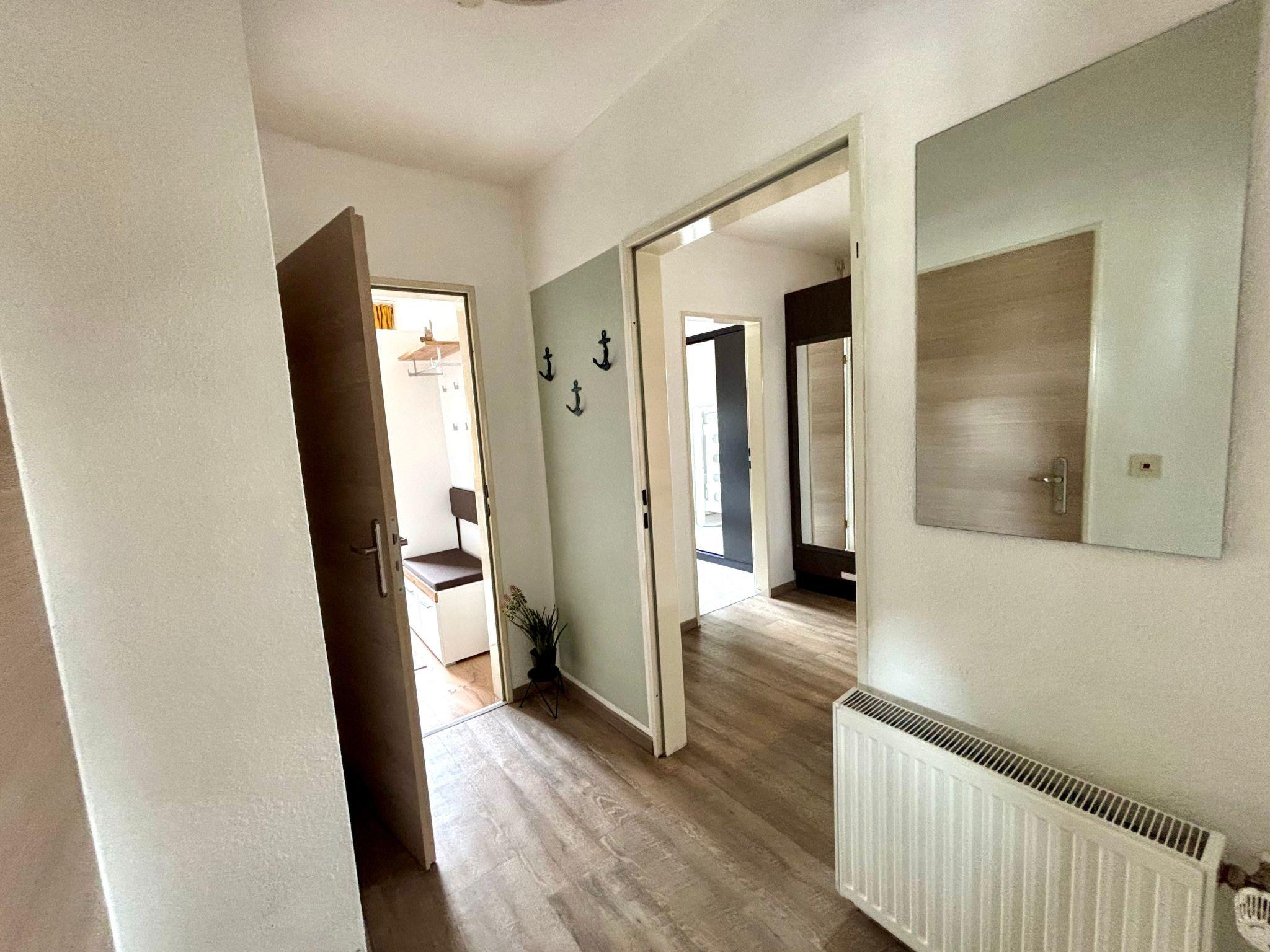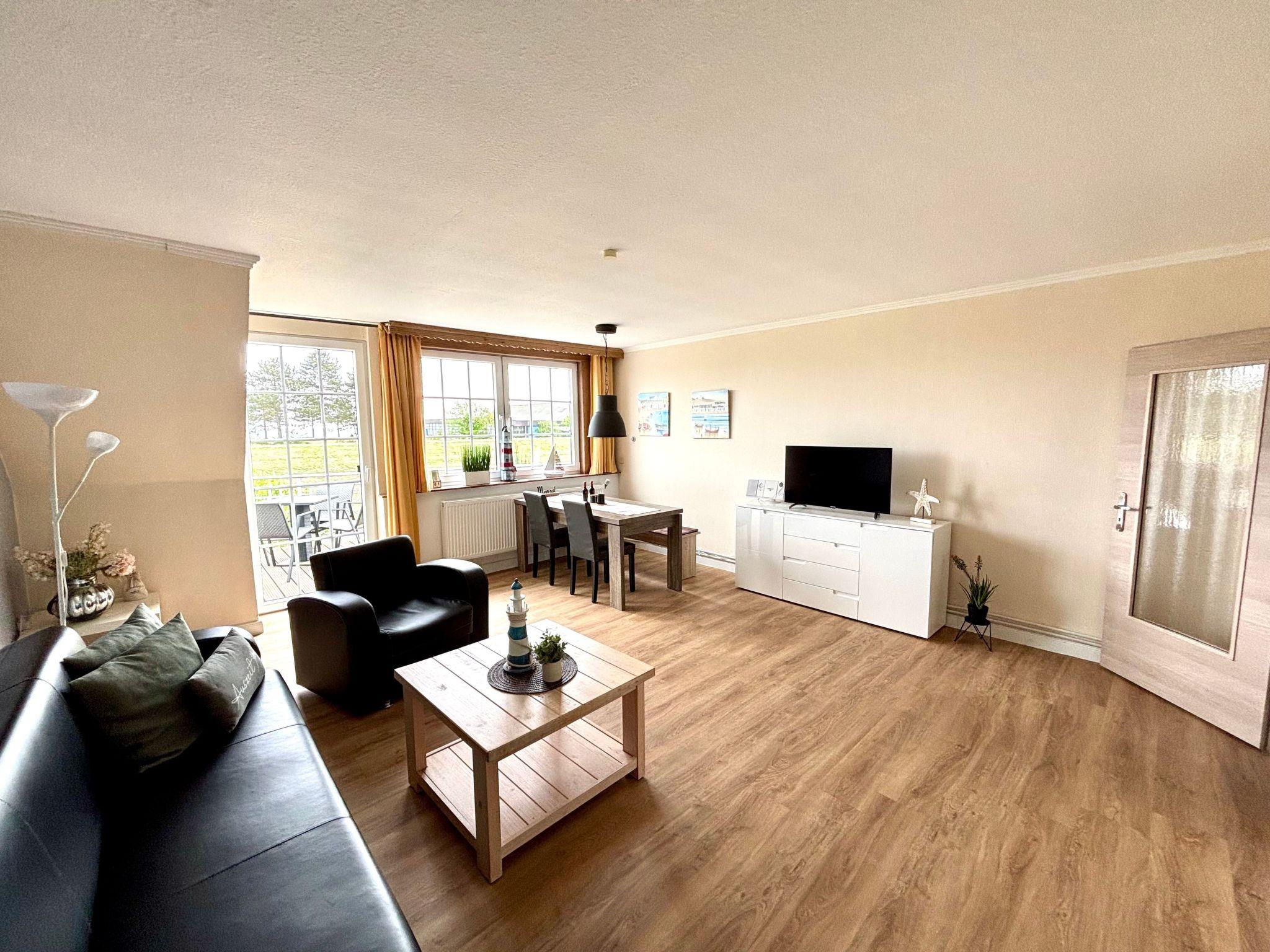 Das HausOstsee liegt in erster Lage, ca. 80m vom kurtaxepflichtigen Strand entfernt. Die Wohnung F ist im ersten Stock und hat einen Balkon mit Meerblick und Gartenmöbeln. Die Wohnung verfügt über ein Schlafzimmer (ein Ehebett, 1,60 x 2 m), ein weiteres Zimmer mit Etagenbett und über einen großen Wohn- und Esszimmer-Bereich. Die Küche ist mit Filterkaffee-Kaffeemaschine, Toaster, Küchengeräte, Geschirr und Töpfen ausgestattet. Die Küche hat kein Backofen!! Zur Ausstattung gehören Radio und LCD-DVBT- TV.
