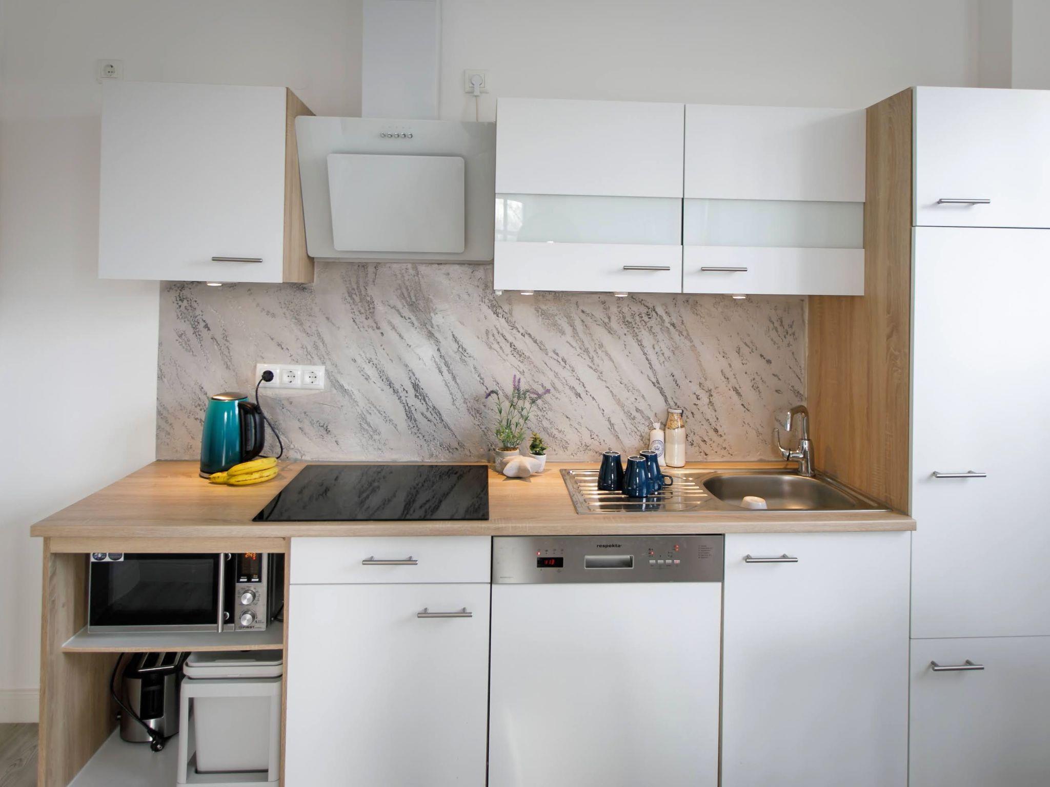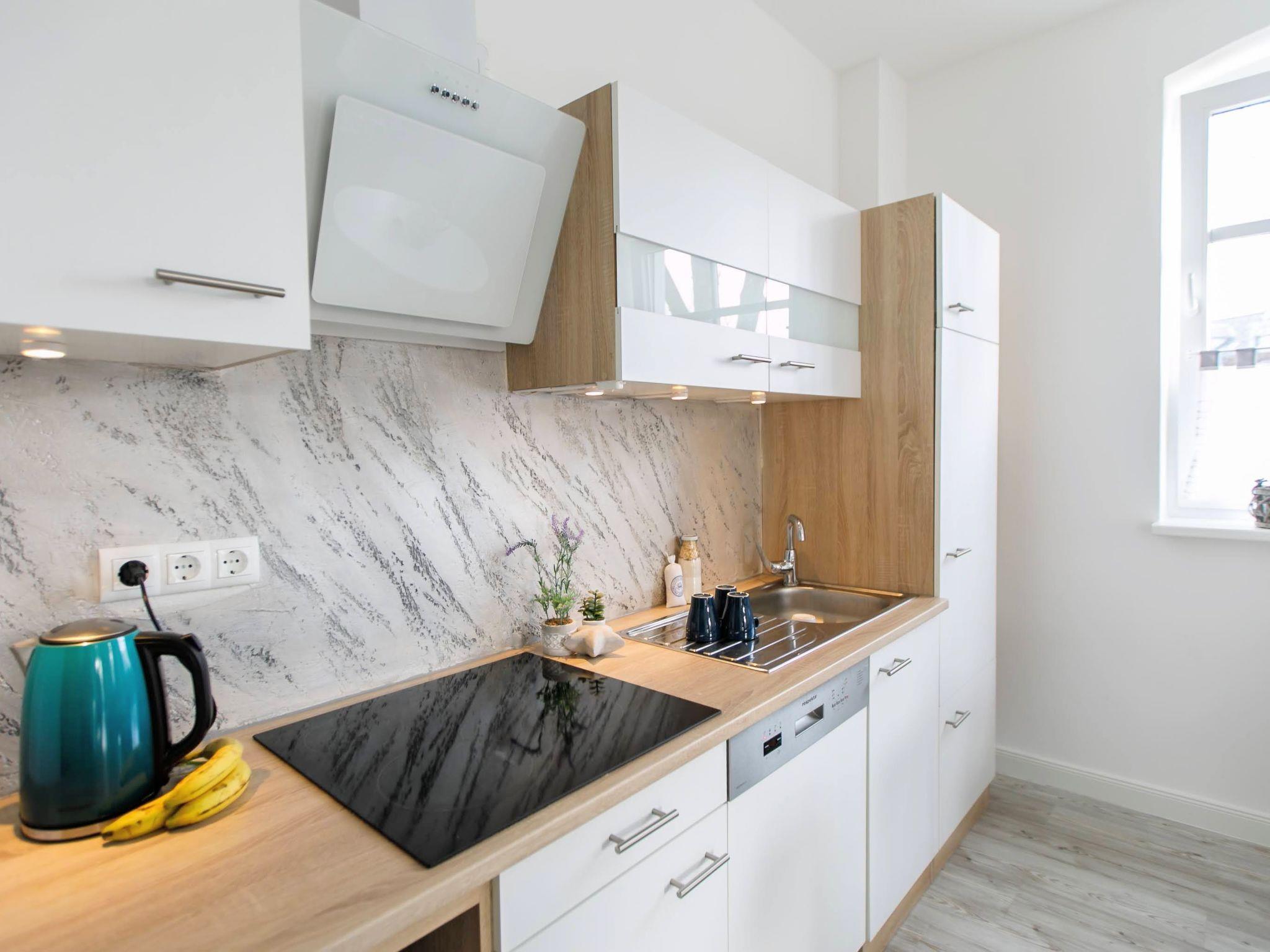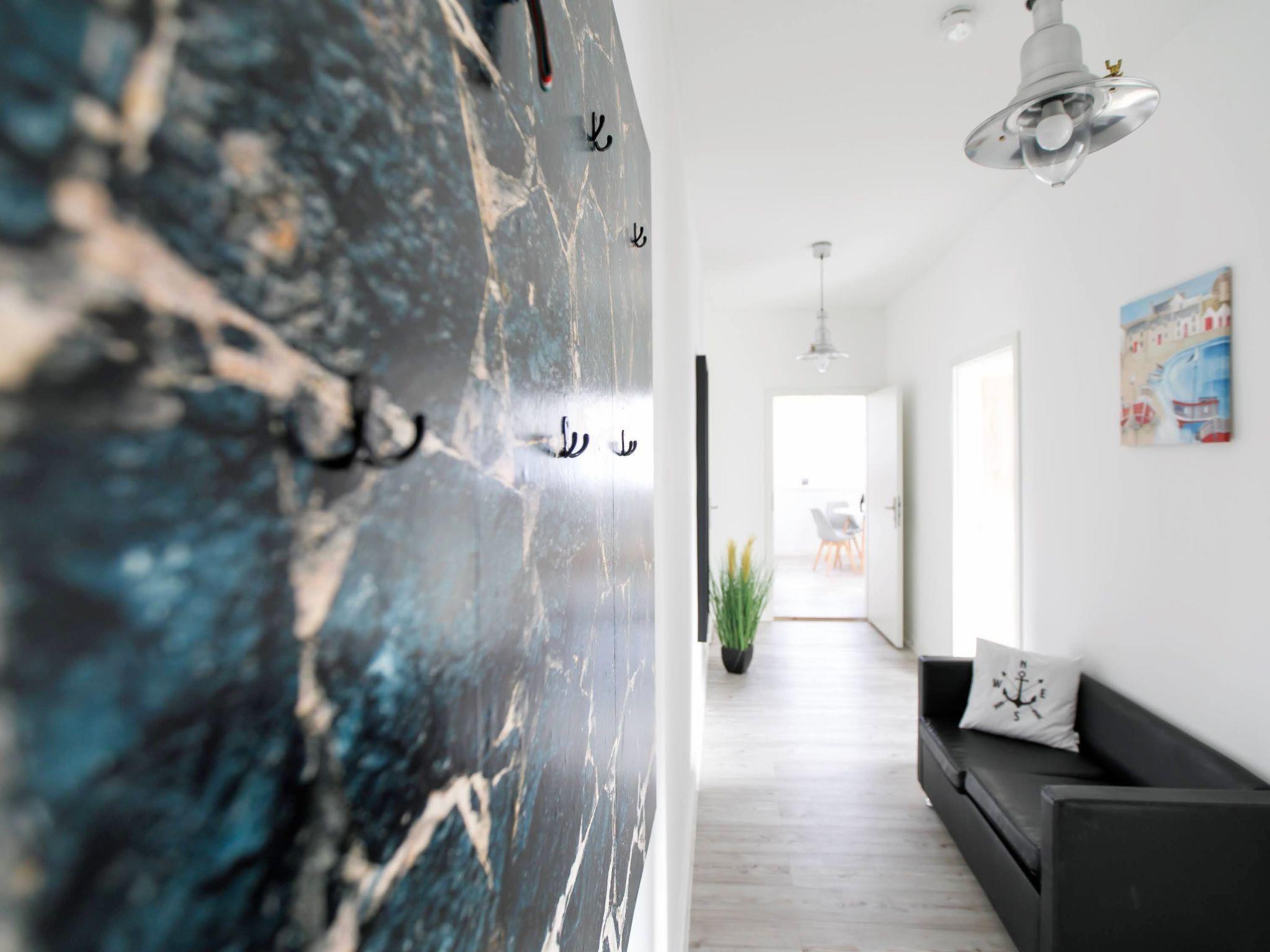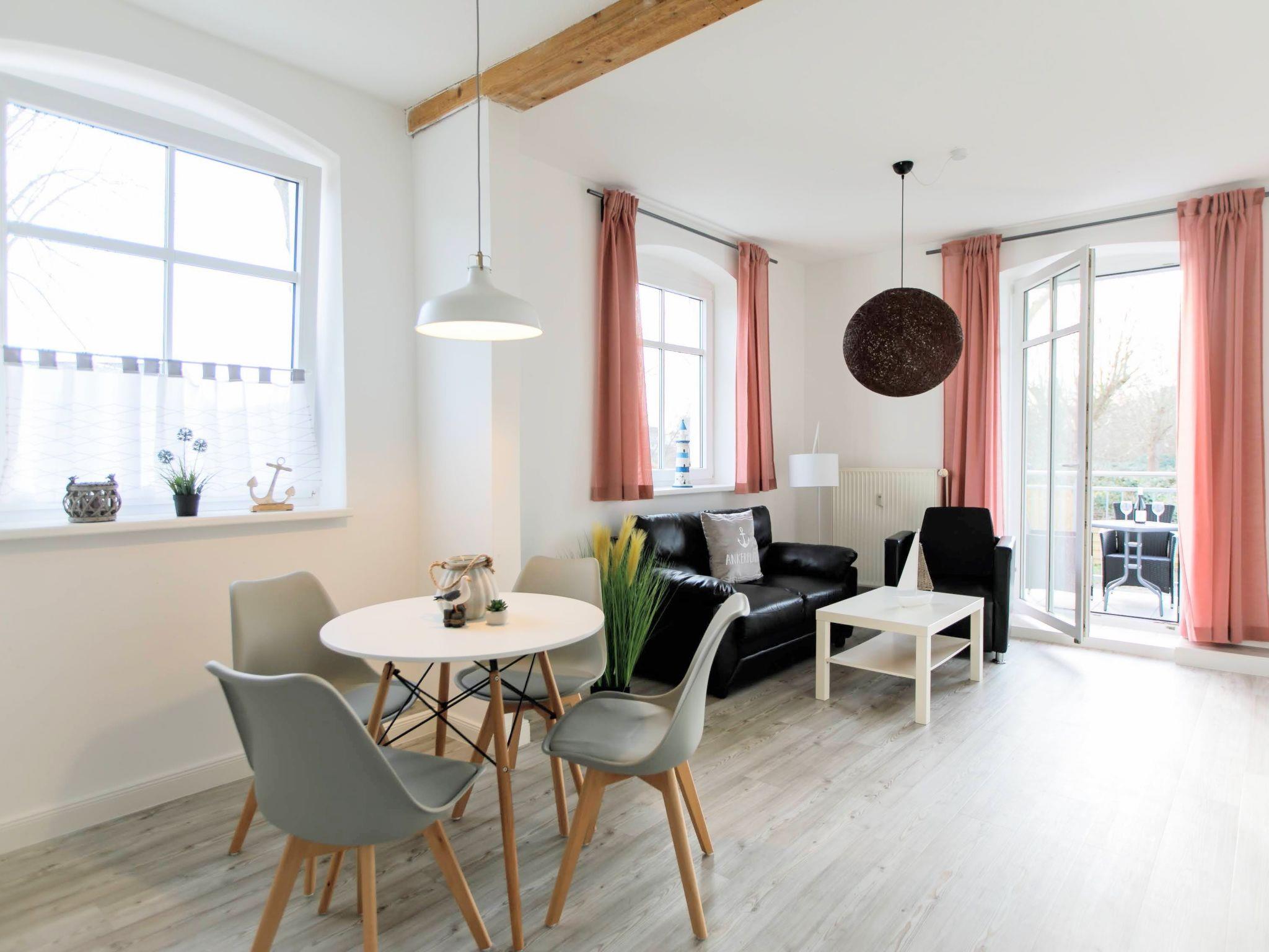 Das HausOstseewelle liegt 150m vom Strand entfernt. Die Ferienwohnung 6 liegt im Erdgeschoss mit Balkon. Die Wohnung hat ein Schlafzimmer ( Ehebett 180x200), ein Kinderzimmer mit zwei Einzelbetten (90x200) und ein Wohn- Esszimmer. Die Küche ist im Wohnzimmer integriert, und ist mit Kaffeemaschine, Toaster, Eierkocher, Küchengeräten, Mikrowelle, Geschirr, Töpfen, Geschirrspüler und einen Vierflammen Ceranfeld ausgestattet. Die Küche hat keinen Backofen. Zur Ausstattung gehören ein Radio und ein LCD-DVBT- TV. Das Haus hat einen Stellplatz pro Ferienwohnung.