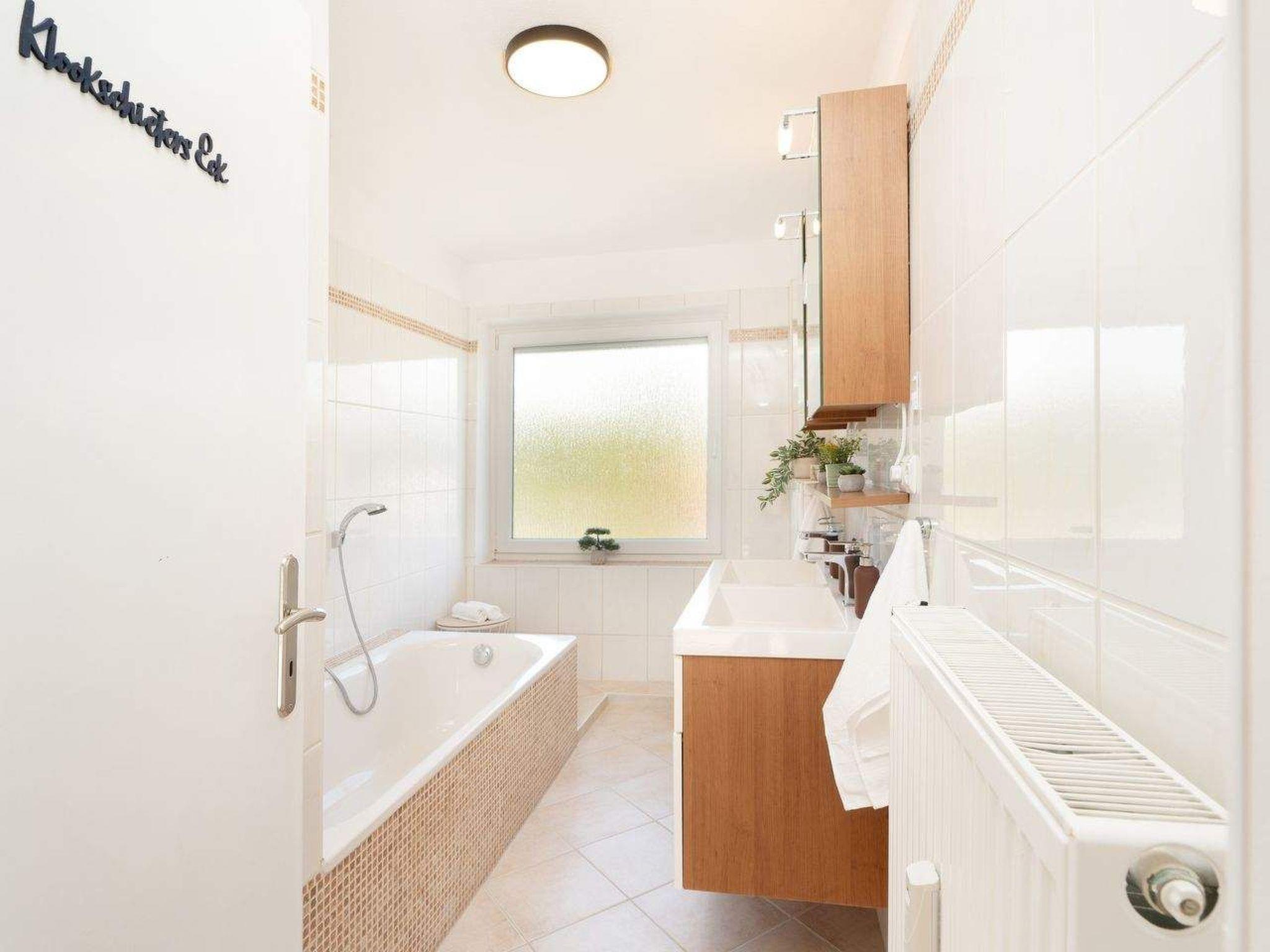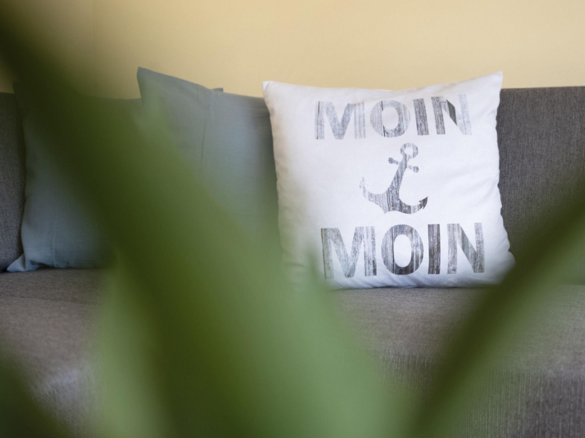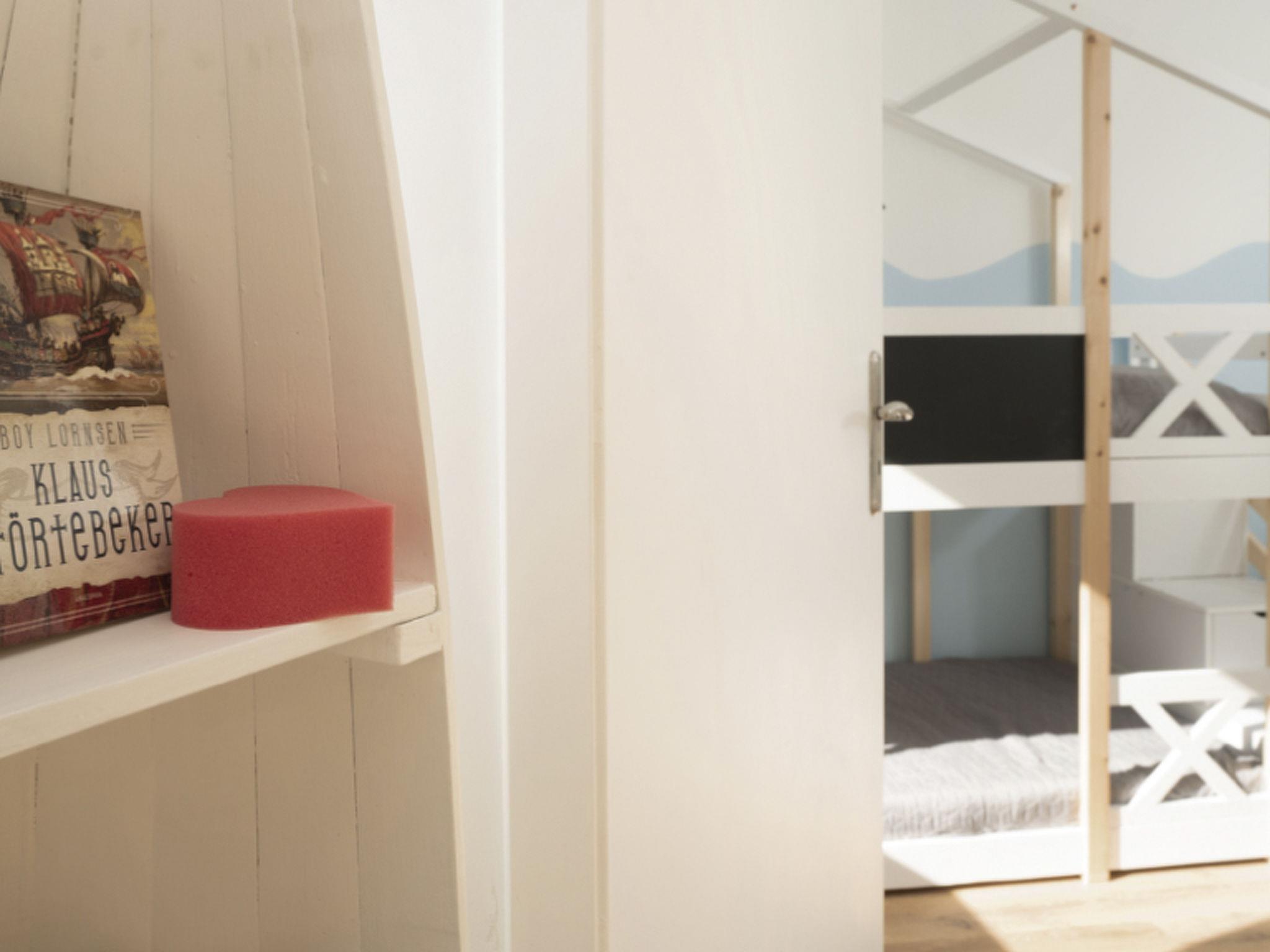 Im Flur finden ihr ausreichend Abstellmöglichkeiten für Strandutensilien, Jacken, Schuhe und Co. Auf der linken Seite des Flurs gelangt ihr in das gemütliche Gästezimmer. Mit dem ausziehbaren Schlafsofa (2 x 80 x 200 cm) kann der Raum ruckzuck zu einem zusätzlichen Schlafzimmer umgestaltet werden. Hier findet ihr allerhand Seemannsgarn für Bücherwürmer und einen Smart-TV für Couch-Potatoes (Streaming-Dienste inklusive). Direkt angrenzend befindet sich ein helles Duschbad mit Fenster.