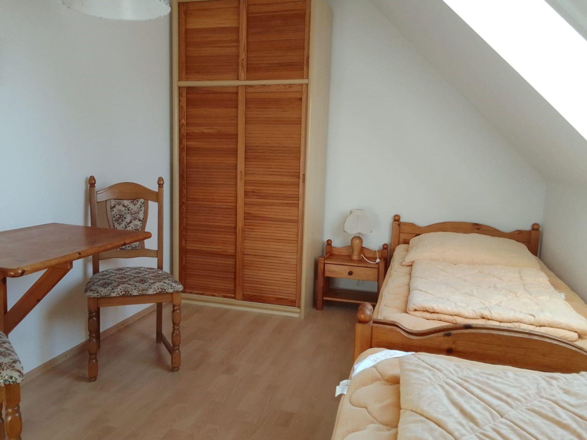 Das Ferienreihenhaus verfügt über 2 separate Schlafzimmer (ca. 14m² und ca. 12m²) mit 1 Doppelbett (1,80m x 2m) bzw. 2 Einzelbetten (2m lang) in der 1. Etage. Für die 5. Person (wir empfehlen es für Kinder bis 10 Jahren) steht ein Gästeklappbett und für alle Gäste stehen synthetische Bettdecken und Kopfkissen zur Verfügung.