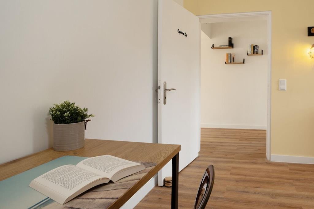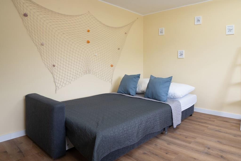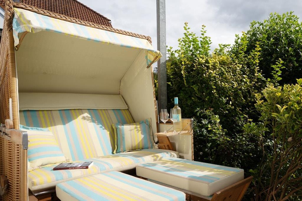 Das neu ausgestattete Appartment Captains Quarters 5 ist der optimale Ausgangspunkt, um die Ostsee von ihrer besten Seite zu erleben. Die 3-Zimmer-Ferienwohnung wurde mit viel Liebe zum Detail gestaltet und überzeugt mit einem einzigartigen maritimen Charme. Sie bietet auf 77 m2 Platz für bis zu 4 Personen. Besondere Highlights: eine großzügige Wohnküche mit Tresen, eine Terrasse mit Strandkorb und eine Vielzahl an maritimen Details, die diese Wohnung zu einem ganz besonderen Ort machen. Zudem sind der Strand und die Strandpromenade nur 200 Meter entfernt. Eingangsbereich & Küche Erstmal richtig ankommen. Im maritim gestalteten Eingangsbereich wartet auf euch eine bequeme Sitzbank. Hier fühlt man sich gleich willkommen. Für ausreichend Abstellmöglichkeiten für Strandutensilien & Co. ist gesorgt. Direkt vom Empfangsbereich geht es in “Smutjes Revier” – eine geräumige Wohnküche mit einer voll ausgestatteten Küchenzeile sowie einem schönen Esstresen mit Barhockern. So könnt ihr euch während des Kochens über die neusten Urlaubserlebnisse austauschen. Oder wie wir im Norden sagen: “Ät, wat gor is. Drink, wat klor is. Sech, wat wohr is.” Wohnzimmer & Schmökerecke Im Wohnzimmer lädt euch das komfortable Schlafsofa (2 x 70 x 200 cm) zum Ausklingen eines schönen Urlaubstages ein. In der Schmökerecke wartet auf euch eine kleine Sammlung mit allerhand Seemansgarn, in der ihr nach dem perfekten Urlaubsbuch stöbern könnt. Lesemuffel genießen den Lieblingsfilm auf dem 50 Zoll Smart-TV (Streaming-Dienste inklusive). Brettspiel- und Kartenfans werden in der Spielesammlung fündig. Zudem gibt es im Wohnzimmer einen großen Esstisch und eine geschmackvolle Einrichtung, die kaum Wünsche offenlässt. Schlafzimmer & Duschbad Das separate Schlafzimmer verfügt über zwei weitere Schlafmöglichkeiten. Ein großer Kleiderschrank bietet ausreichend Stauraum für die Urlaubsgarderobe. Das Doppelbett (160 x 200 cm) bietet Raum für geruhsame Nächte. Im Schlafzimmer findet ihr außerdem einen weiteren Smart-TV (Streaming-Dienste inklusive) für gemütliche Fernsehabende im Bett und einen praktischen Schreibtisch, an dem ihr in Ruhe eure Urlaubspost verfassen könnt. Das helle Duschbad mit Spiegelschrank und Fenster sowie rundum elektrische Fensterläden runden eure stilvolle Ferienunterkunft ab. Dit & Dat Ihr möchtet euer Haustier mit in den Urlaub nehmen? Bei uns ist es gegen einen kleinen Aufpreis sehr willkommen. Der nahegelegene Hundestand bietet einen optimalen Anlaufpunkt. Das Apartment hat rundum elektrische Rollläden. Bitte habt dafür Verständnis, dass es sich bei dieser Ferienwohnung um ein Nichtraucherobjekt handelt. Ausreichend Parkmöglichkeiten sind in den angrenzenden Straßen “Querstraße” und “Haakestraße” vorhanden. Ein Kinderreisebett für die ganz kleinen Gäste (bis 15 kg) ist ebenfalls vorhanden.