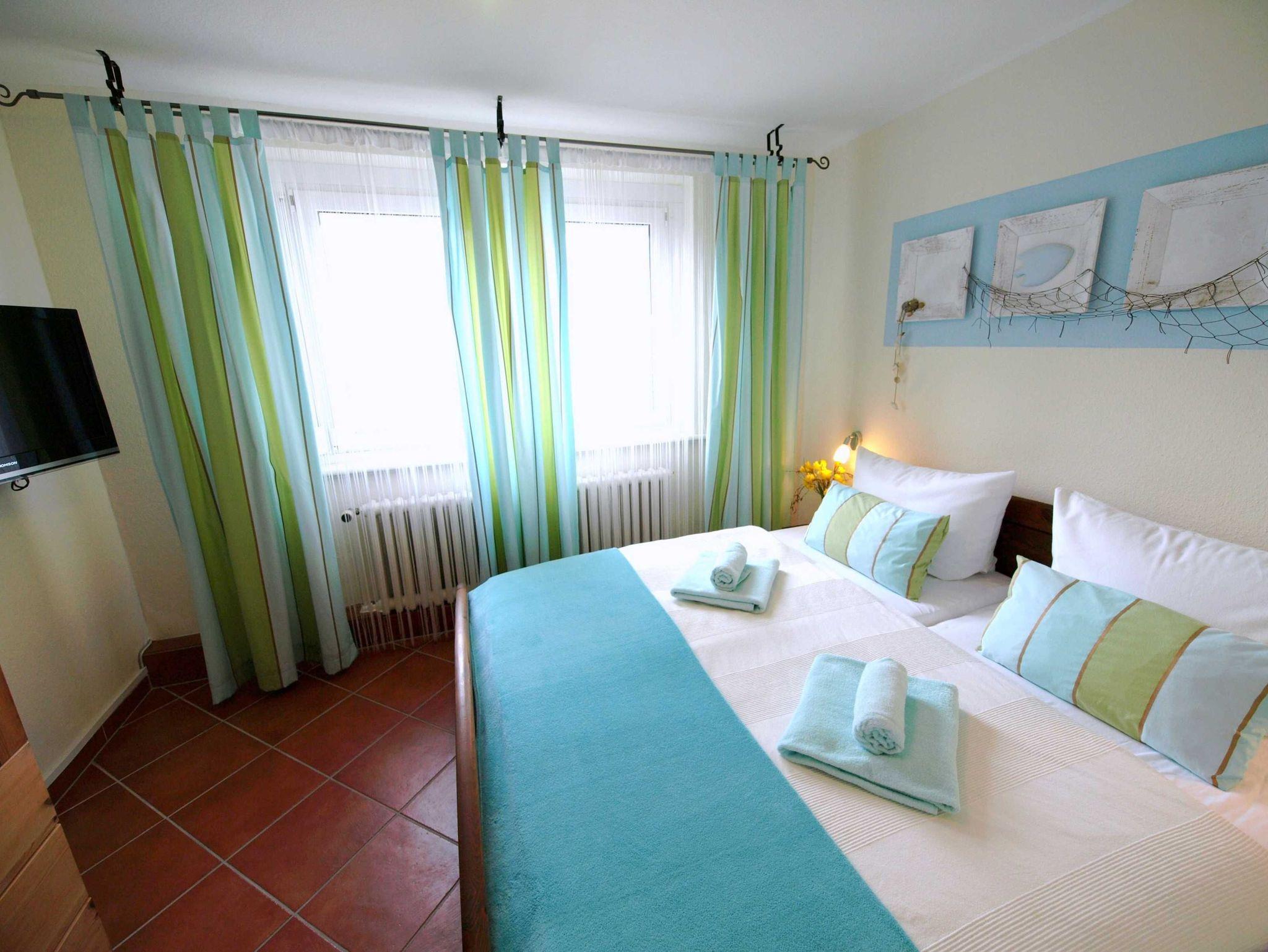 80 Meter Strandentfernung - Ferienwohnung ca. 45 qm im 1. OG mit Balkon und Abendsonne für max. 3 Erwachsene. 1 Schlafzimmer mit TV, 1 Wohnzimmer mit TV und Blue Ray/DVD Player und 1 Schrankbett (100 x 200 cm), gemütlicher Couchecke und Essecke. Offene Küche mit Spülmaschine, Backofen, Kühlschrank mit Gefrierfach und vollständig ausgestattet. Großes tageslicht Duschbad mit Wanne, 1 kostenloser PKW-Stellplatz auf dem Grundstück. E-Bike Stellplatz. Nichtraucher. Keine Haustiere erlaubt. WLAN kostenlos. Seitlicher Teil-Meerblick aus dem Schlafzimmer.