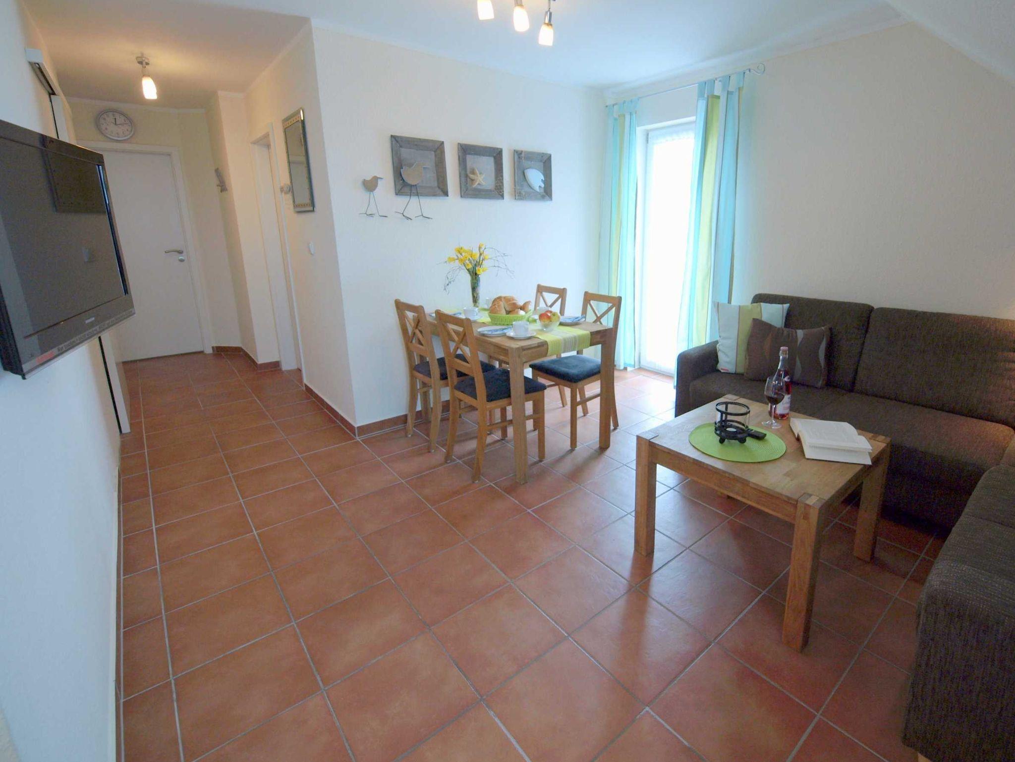80 Meter Strandentfernung - Ferienwohnung ca. 45 qm für max. 3 Erwachsene und 1 Kind im Dachgeschoss (2. OG) mit West-Balkon und Abendsonne - Blick über Dahme. 2 Schlafzimmer mit zusätzlichem TV im Elternschlafzimmer und DVD Player. Etagenbetten im Kinderschlafzimmer. Wohnzimmer mit offener integrierter Küche, Spülmaschine, Backofen und Kühlschrank mit Gefrierfach und separatem Esstisch, Duschbad. 1 kostenloster PKW-Stellplatz auf dem Grundstück. E-Bike Stellplätze, Nichtraucher. Haustiere nicht erlaubt. WLAN kostenlos.