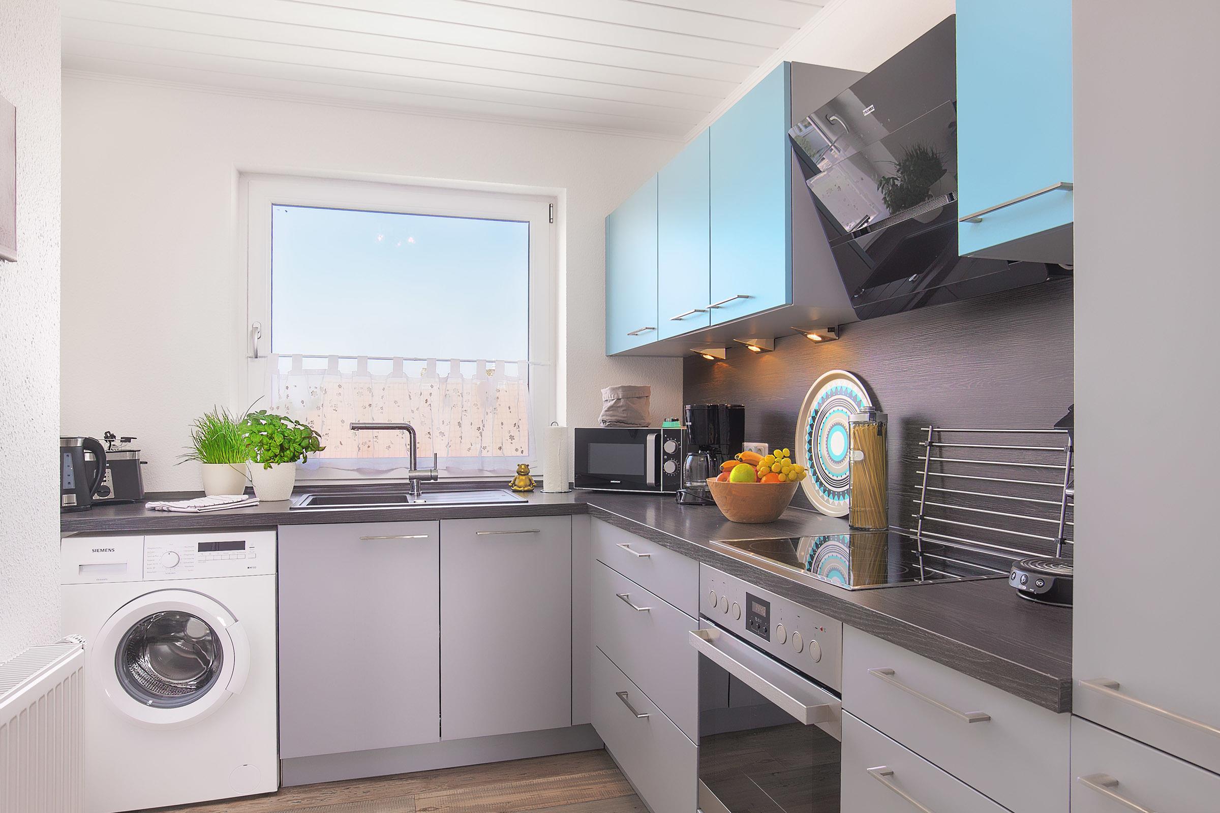 Aufteilung und Ausstattung Ihres Ferienobjektes: Sie verfügt über 2 separate Schlafzimmer, eines mit Boxspringbett (180x200cm) Schrank, Kommode und TV Gerät. Hier ist auch noch ausreichend Platz für ein Kinderreisebett. Im 2. Schlafzimmer befinden sich 2 Einzelbetten (90x200cm) ein Kleiderschrank und TV Gerät mit DVD Player. Das Wohnzimmer ist mit einem gemütlich wärmenden Holzofen, TV- Wand, Esstisch mit Bestuhlung und Couchgarnitur sowie Zugang zum möblierten Balkon mit Elektrogrill ausgestattet. Die komplett ausgestattete Küche lässt keine Wünsche offen, neben Kühlschrank mit Gefrierfächern befinden sich Backofen, Ceranfeld, Geschirrspüler, Waschmaschine und Mikrowelle in ihr. Das Badezimmer ist mit Dusche, Handtuchheizkörper und WC ausgestattet. Als Fußbodenbeläge werden Fliesen im Bad und ein Vinylboden / Linoleumfußbodenbelag in der Küche und den Wohnräumen verlegt. Vor dem Haus befindet sich ein eigener Kfz- Stellplatz. Fahrräder können in einer Holzhütte untergestellt werden. Für Hundebesitzer sind der nahegelegene Wald und der Hundestrand im Süden des Ortes ideal. - Zur Information: Zum Mietpreis in der Preisliste kommt die Endreinigung und die Kurabgabe hinzu !