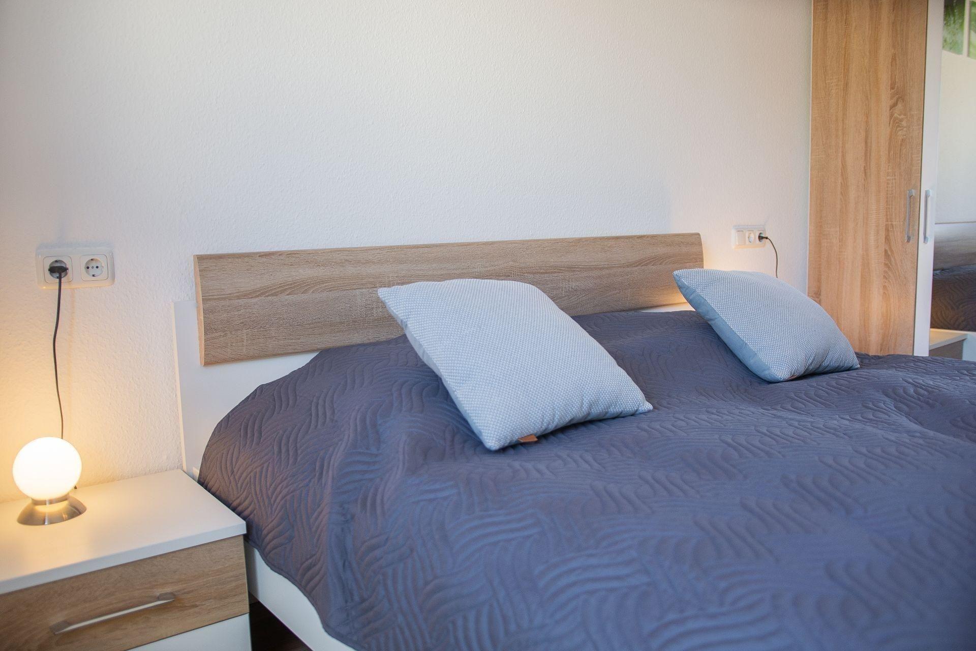 Moderne 3- Zimmer Wohnung mit Südbalkon im 1. OG. Beide Schlafzimmer sind mit Doppelbetten ausgestattet. Das große Wohnzimmer mir angrenzender Küche und Essplatz sind durch die vielen Fenster lichtdurchflutet. Ein Bad und ein Gäste-WC sind vorhanden.