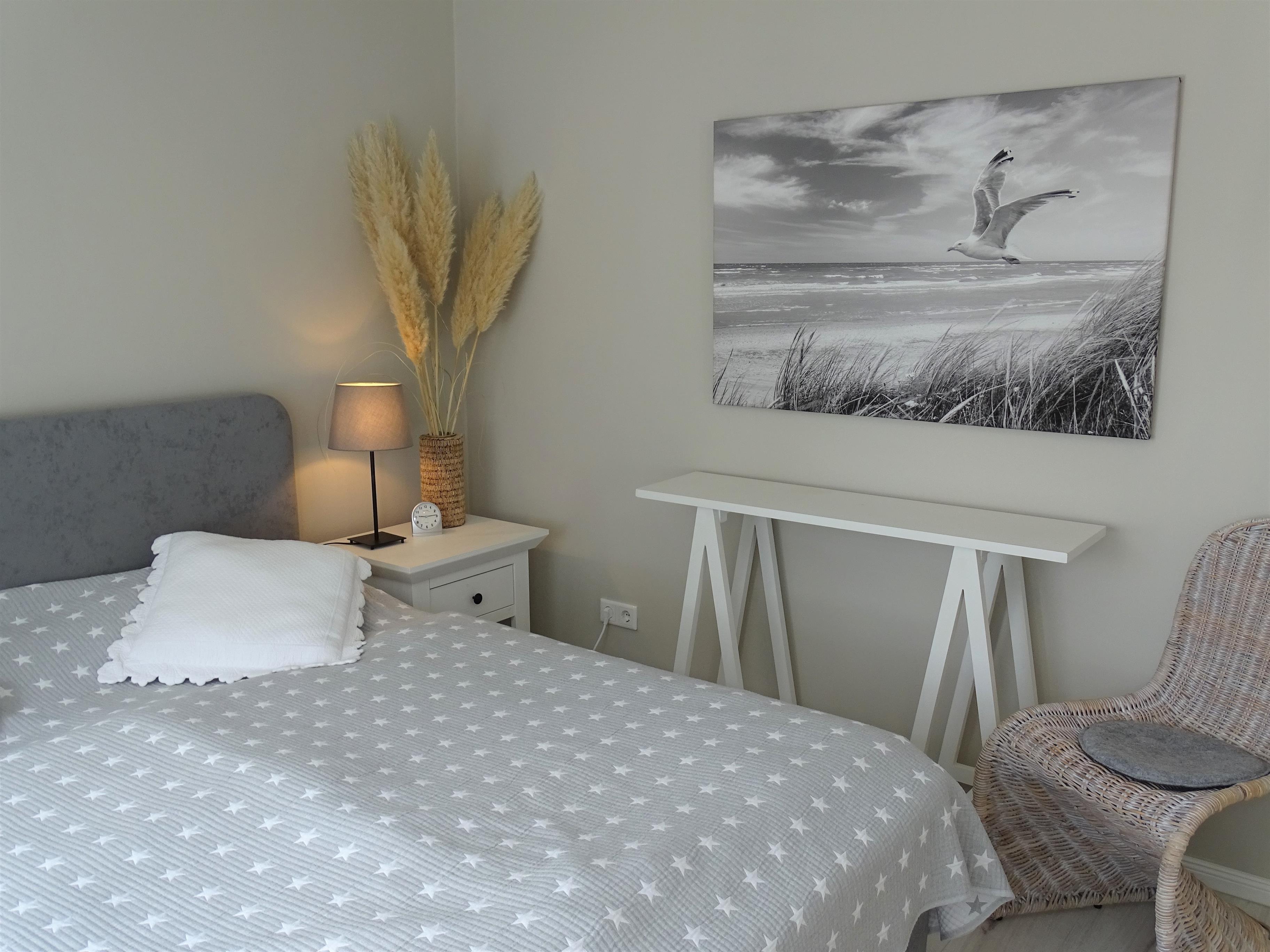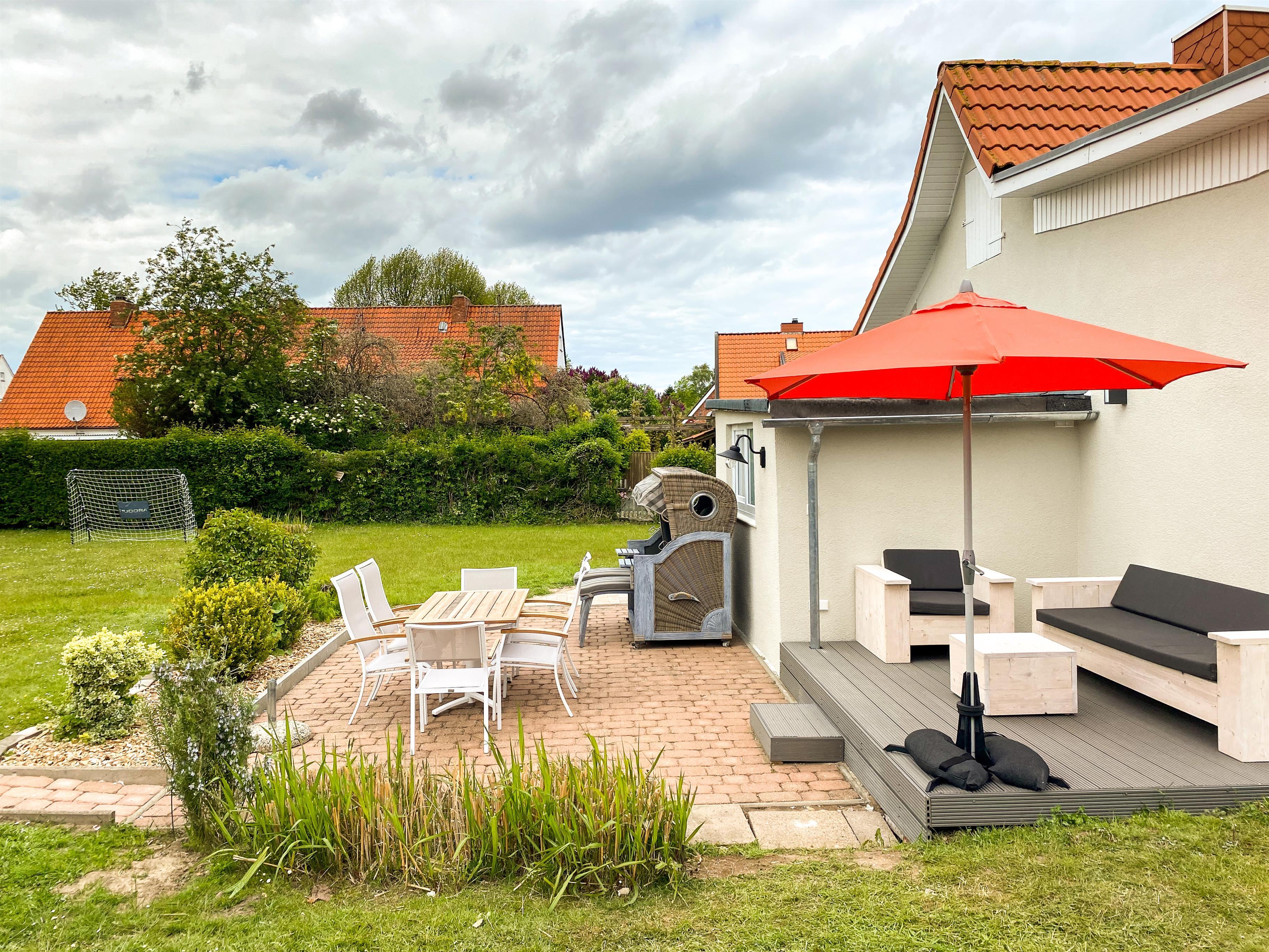 Entspannen Sie im maritim gestalteten Ferienhaus Möwenherz mit großem Garten und Holzofen in Dahme, nur 500 m vom Strand entfernt.