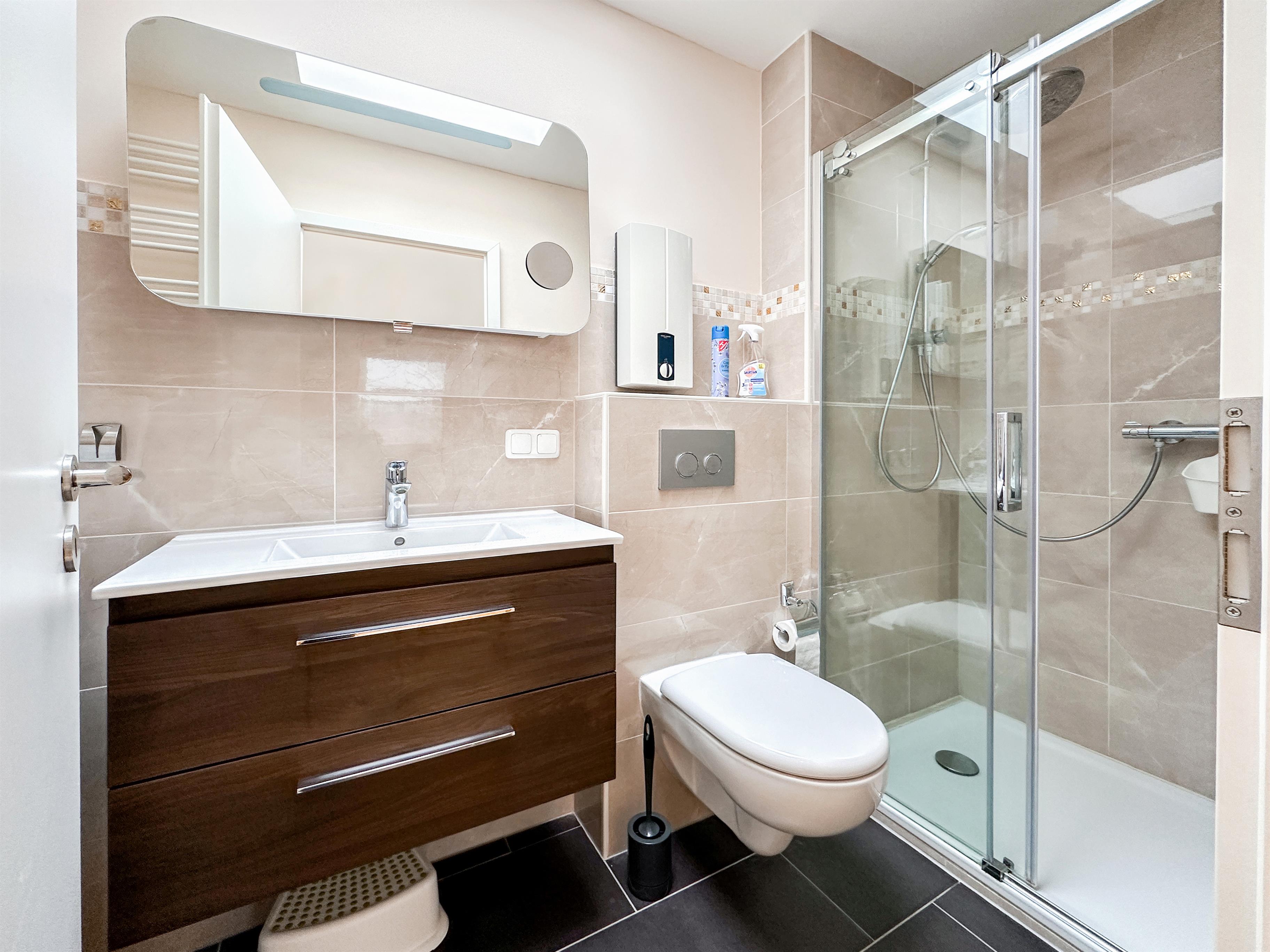 Neben einem offenen Wohn- Essbereich hat die Wohnung Nr. 5 zwei separate Schlafzimmer, ein modernes Duschbad mit Tageslicht, sowie eine Infrarot-Sauna, die zum Entspannen einlädt.