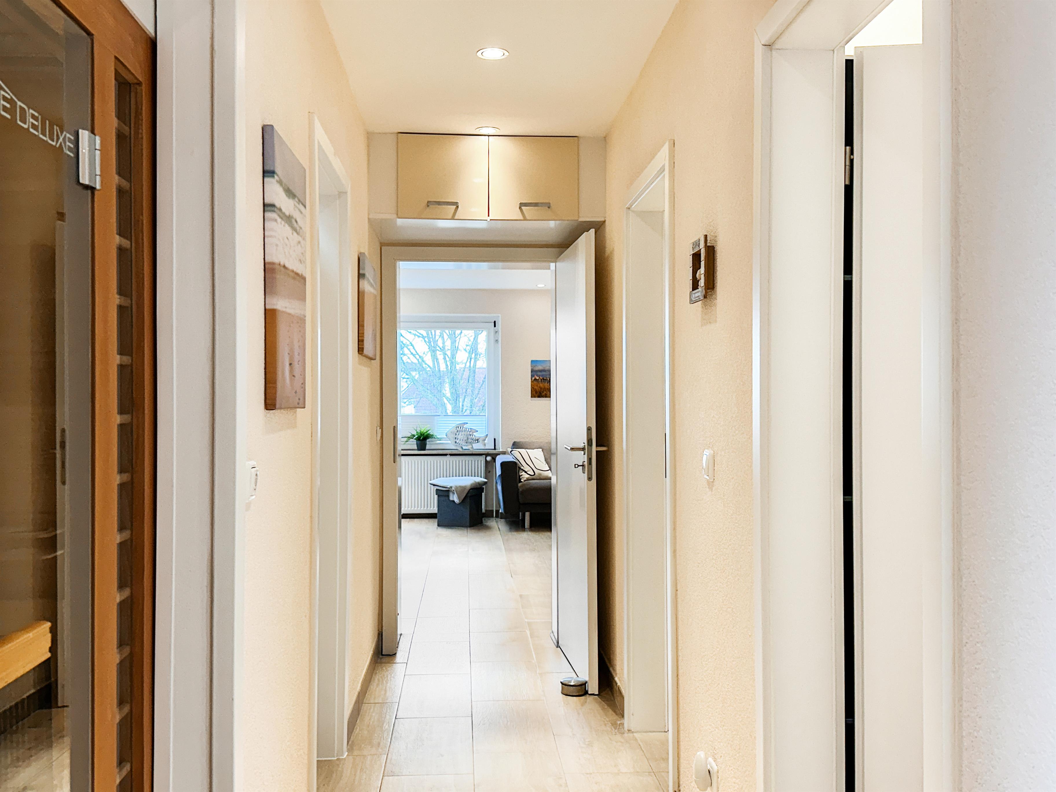 Hochwertige Ferienwohnung Glückauf in Dahme, 60m² mit Sauna und Balkon, nur 100m vom Strand entfernt.