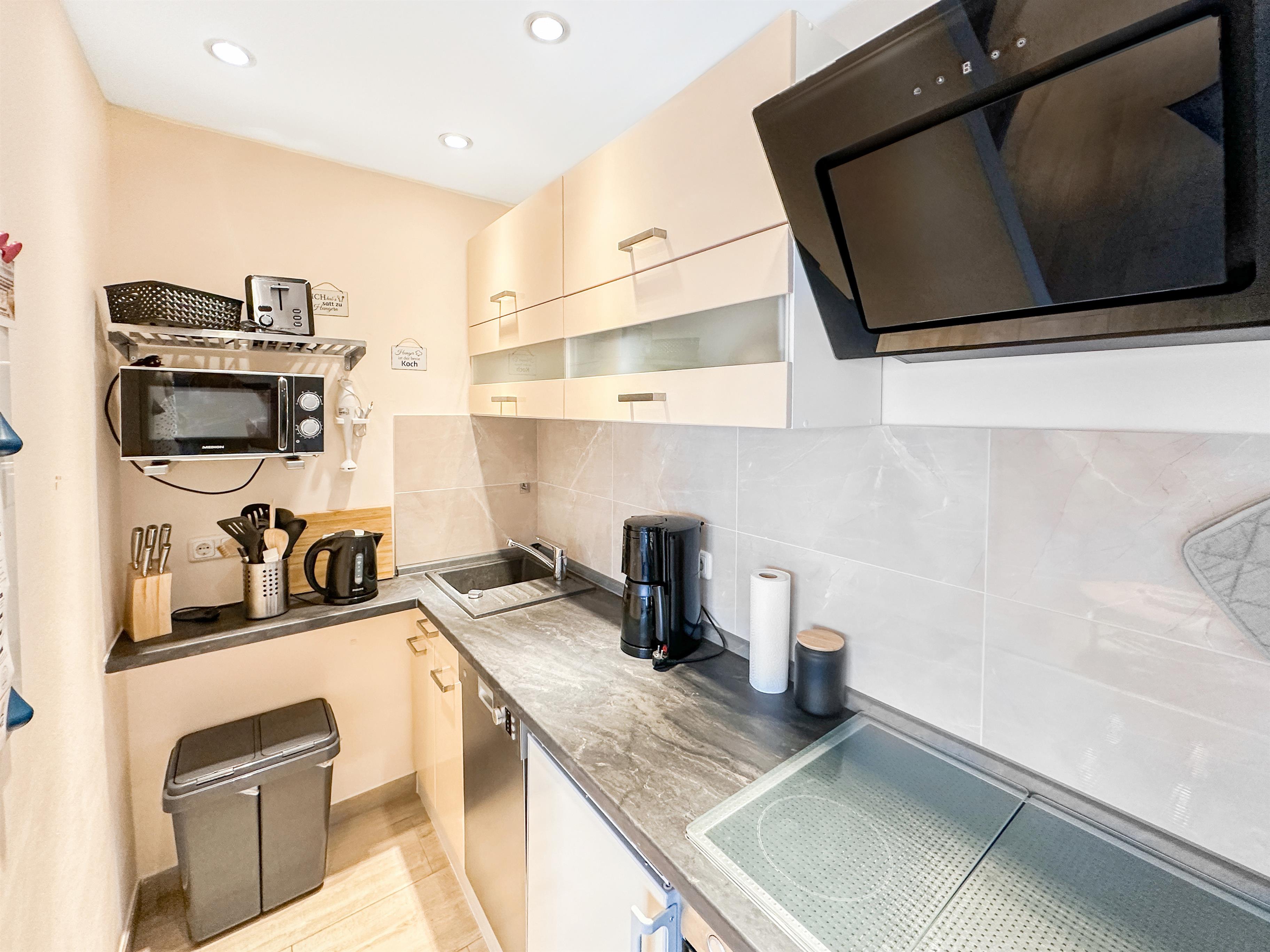 Folgende zusätzliche Ausstattungen erwarten Sie in der für maximal 4 Personen (inkl. Kleinkind) geeigneten Ferienwohnung: Hochwertig ausgestattete Küche mit u.a. Cerankochfeld, Backofen, Kühlschrank mit Eisfach, Spülmaschine,