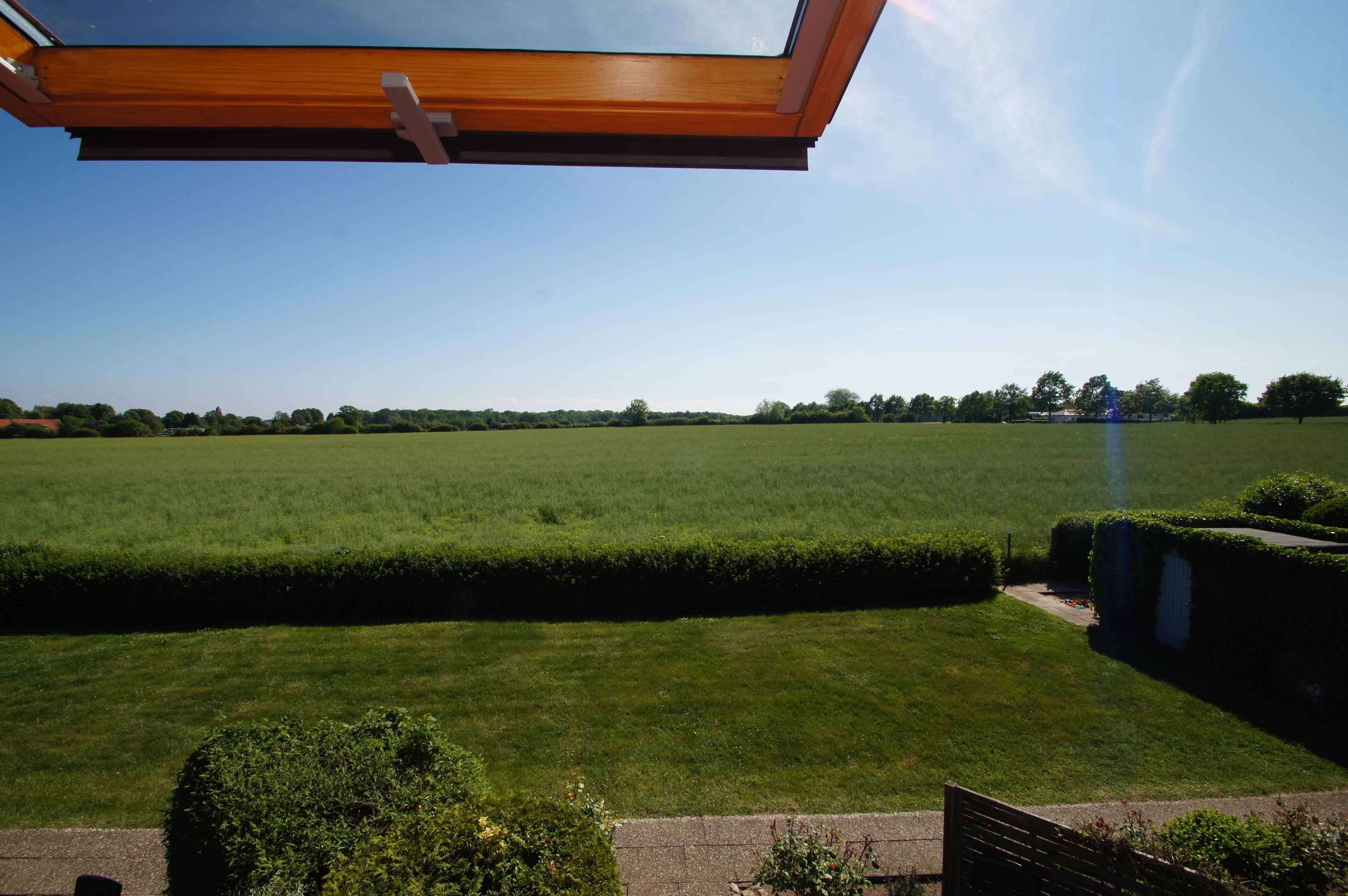 Gemütliche Ferienwohnung in Dahme mit Dachterrasse und Blick über Felder, ideal für erholsame Tage an der Ostsee.