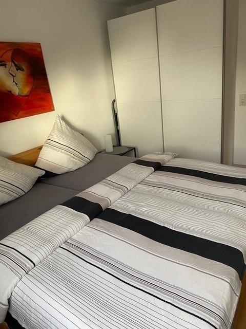 Zudem verfügt die Ferienwohnung über eín separates Schlafzimmer mit Doppelbett, zwei Nachttischen und einem 2-türigen, geräumigen Schiebetüren-Kleiderschrank, der viel Platz für Ihre Urlaubsgarderobe bietet. ( Kinderreisebett vorhanden )