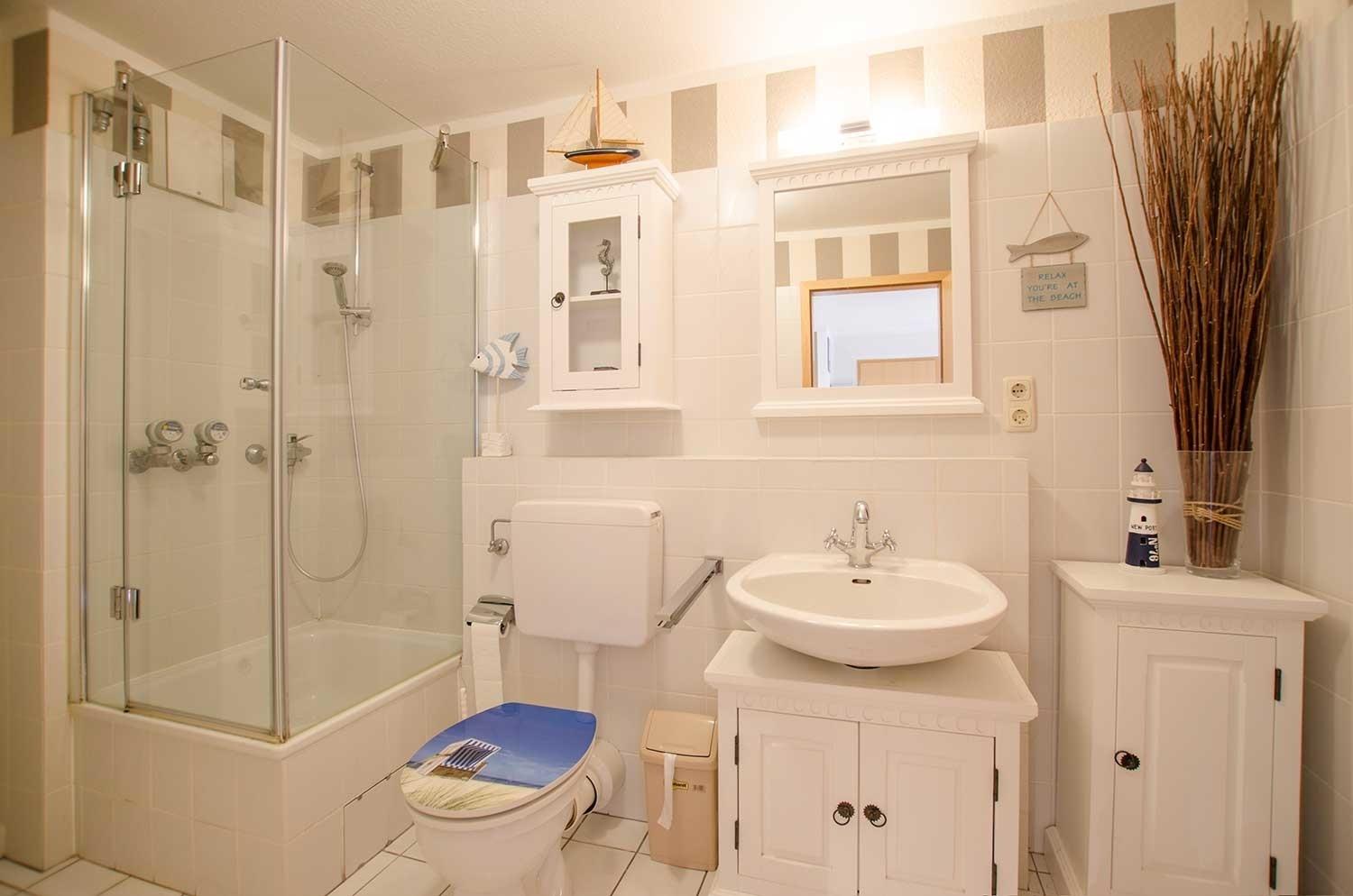 Zudem gehört zur Ferienwohnung im Ostseebad Dahme ein schönes Bad mit Dusche und WC.