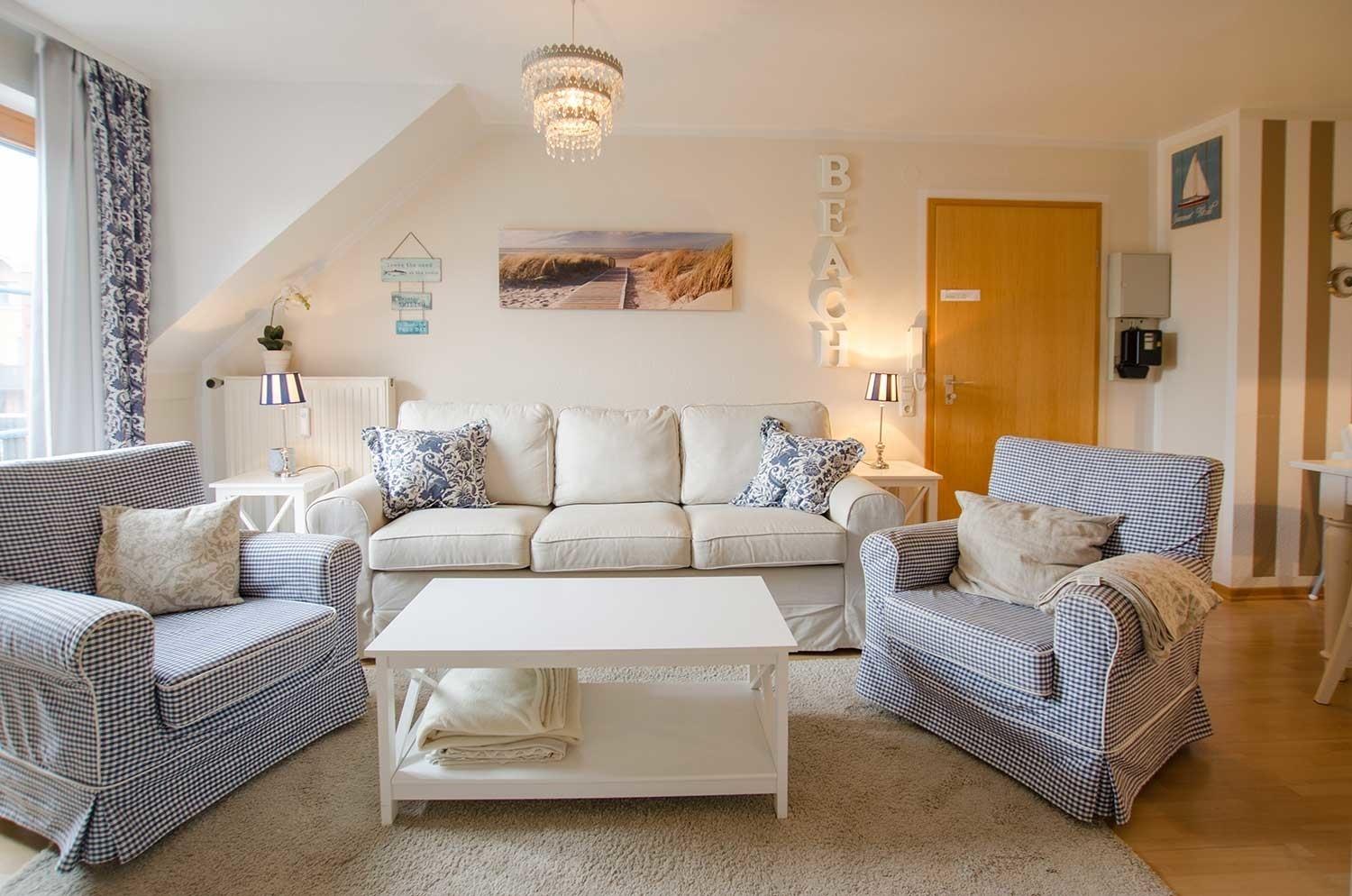 Die Fewo ist stilvoll und hell eingerichtet und dicht am Strand gelegen.