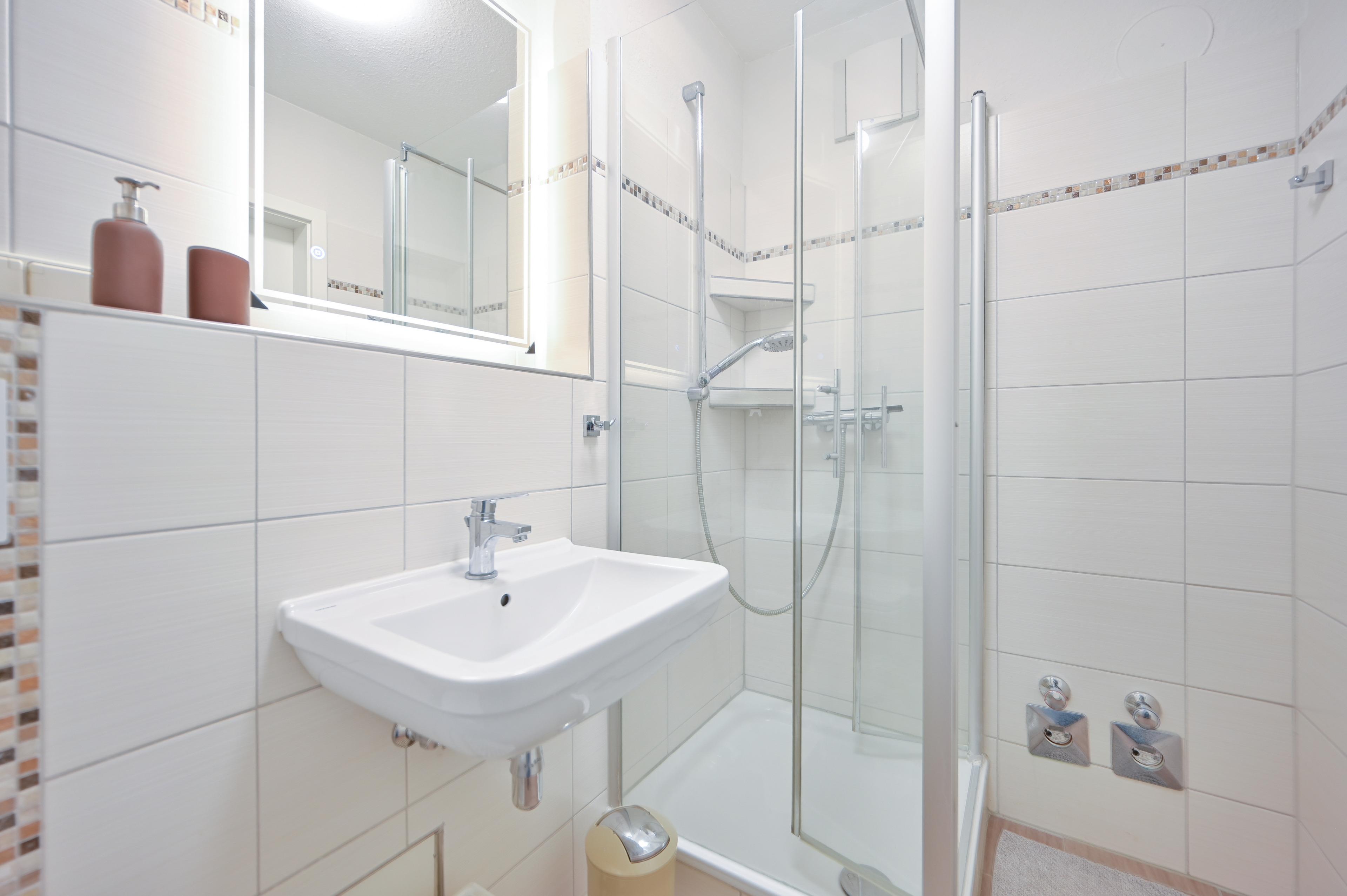Das modernisierte Badezimmer ist mit einer Dusche (niedriger Einstieg), einem Fön und Kosmetikspiegel ausgestattet.