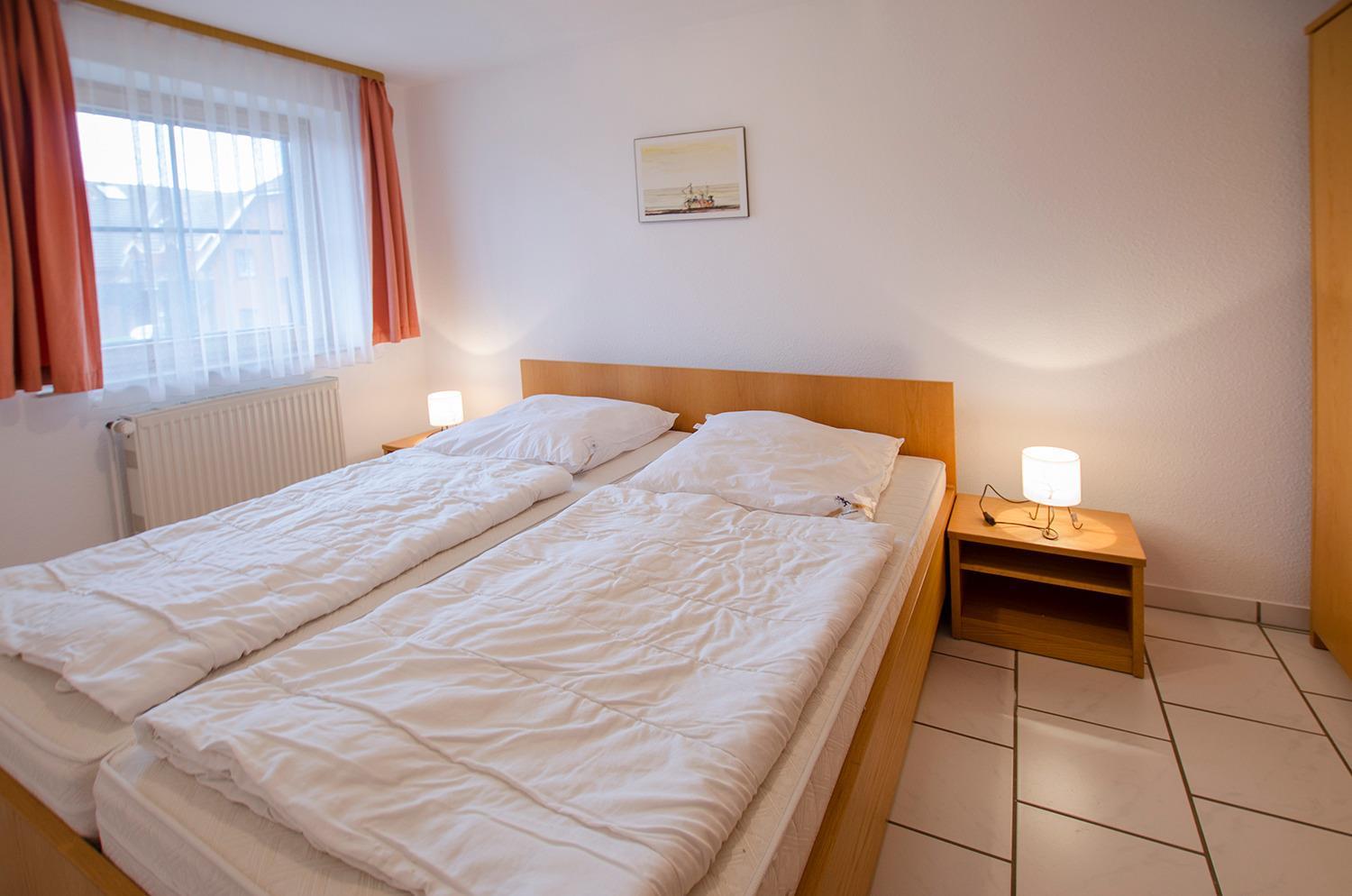 Vom Wohnschlafzimmer haben Besucher Zugang zum möblierten Balkon. Darüber hinaus verfügt die Ferienwohnung über ein separates Schlafzimmer mit Doppelbett, Nachttischen und einem 3-türigen Kleiderschrank. Zur Ferienwohnung gehört zudem ein Flur mit Garderobe und großem Spiegel. Gäste finden in der gemütlichen Ferienwohnung außerdem ein großes Bad mit Dusche und WC.