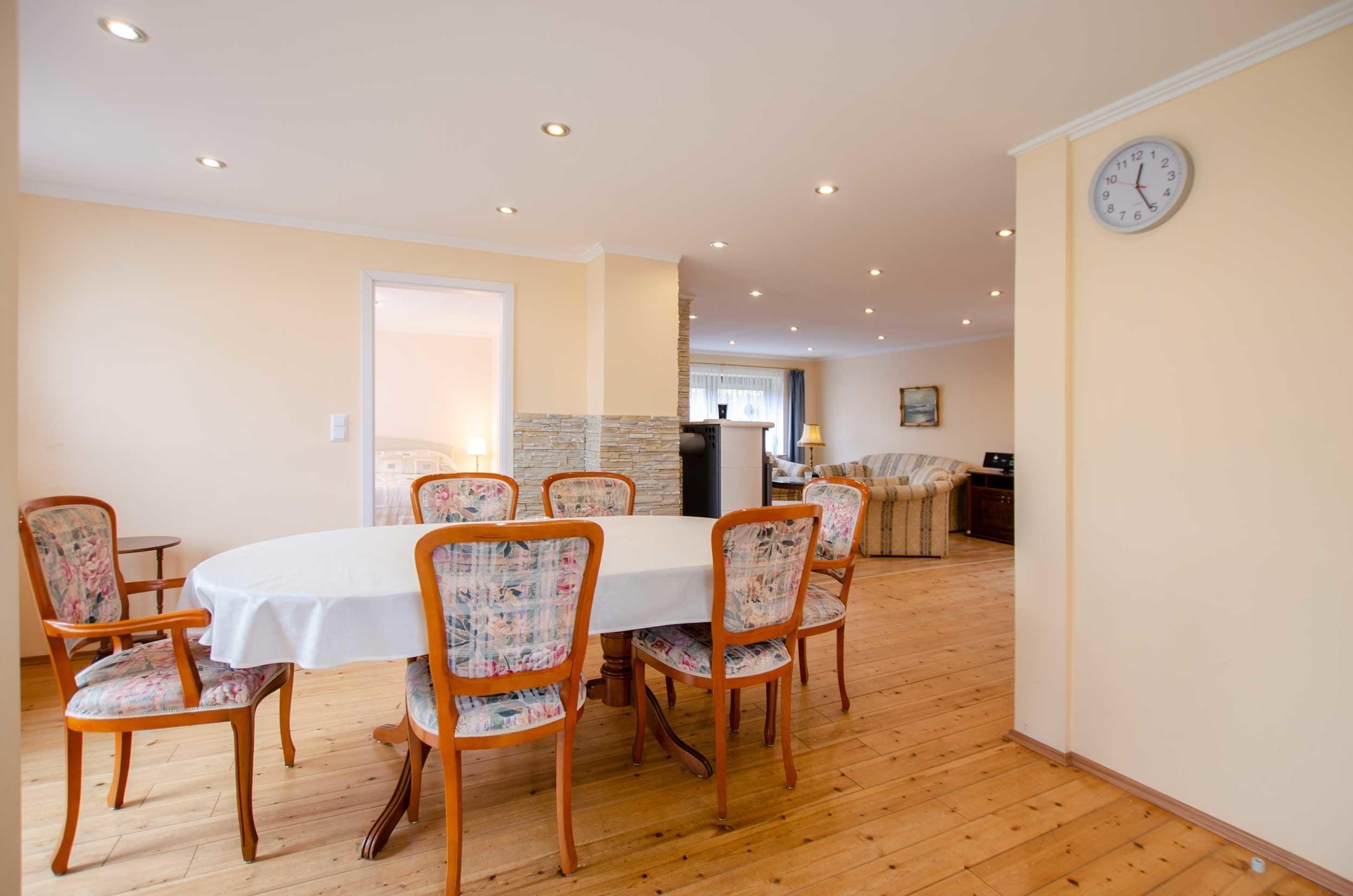Sie betreten die Ferienwohnung in den großzügigen, hellen Wohnbereich.