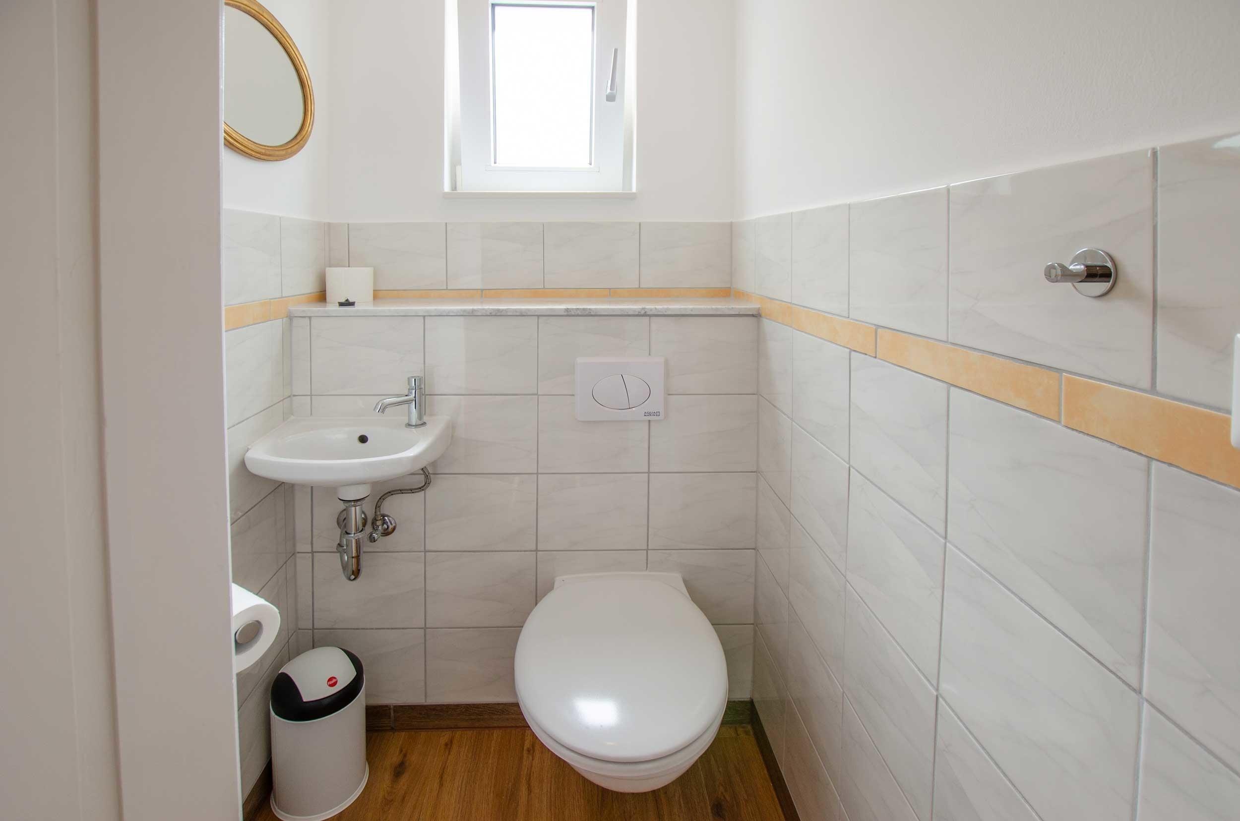 Im Treppenhaus ist ein Gäste-WC vorhanden.
