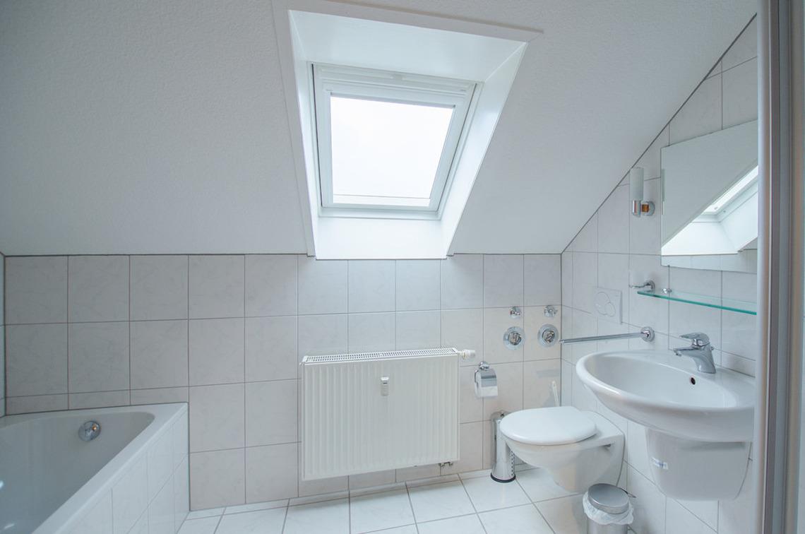 Außerdem gehören zur Ferienwohnung ein separates Schlafzimmer mit Doppelbett (160 x 200) und Kleiderschrank und ein weiteres separates Schlafzimmer mit zwei Einzelbetten (90 x 200) und Kleiderschrank. Darüber hinaus verfügt das Appartement über ein Badezimmer mit Badewanne, Dusche, Waschbecken und Waschmaschine und ein weiteres Bad mit Dusche/WC sowie eine Wohnküche mit Esstisch und 6 Stühlen.