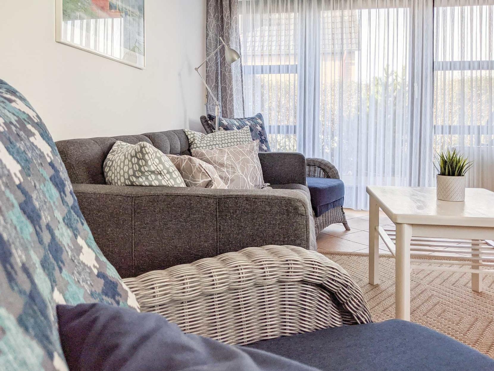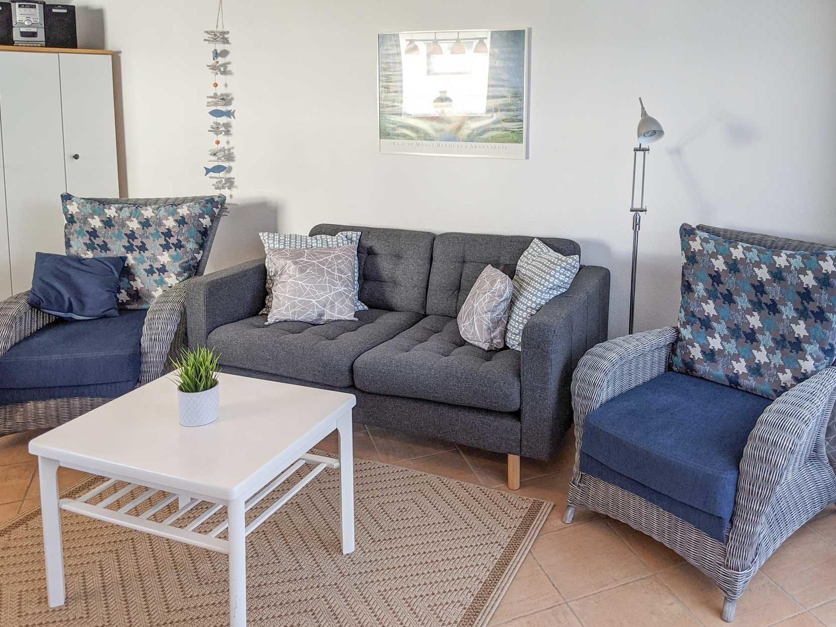 Die Ferienwohnung ist gemütlich eingerichtet und die Terrasse bietet auch vor Ort ein gemütliches Plätzchen um die Sonne genießen zu können.