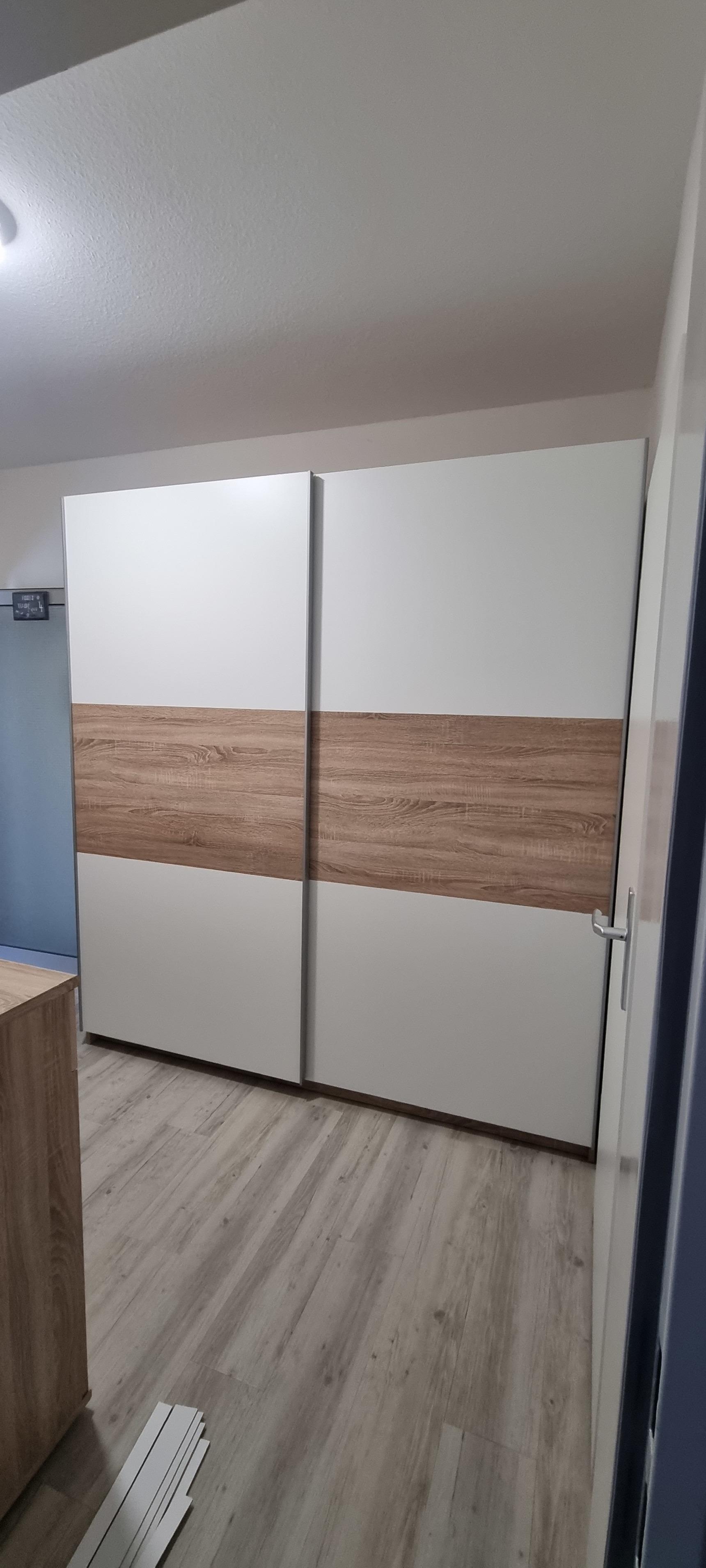 Das eine Schlafzimmer besteht aus zwei Einzelbetten mit zwei Nachttischen, dass zweite Schlafzimmer verfügt über ein Hochbett mit zwei Schlafplätzen und Kleiderschrank. Sollte ein Kleinkind mitreisen, steht ein Kinderreisebett und ein Hochstuhl bereit. Das Badezimmer verfügt über eine Dusche mit Glastüren und einem WC.