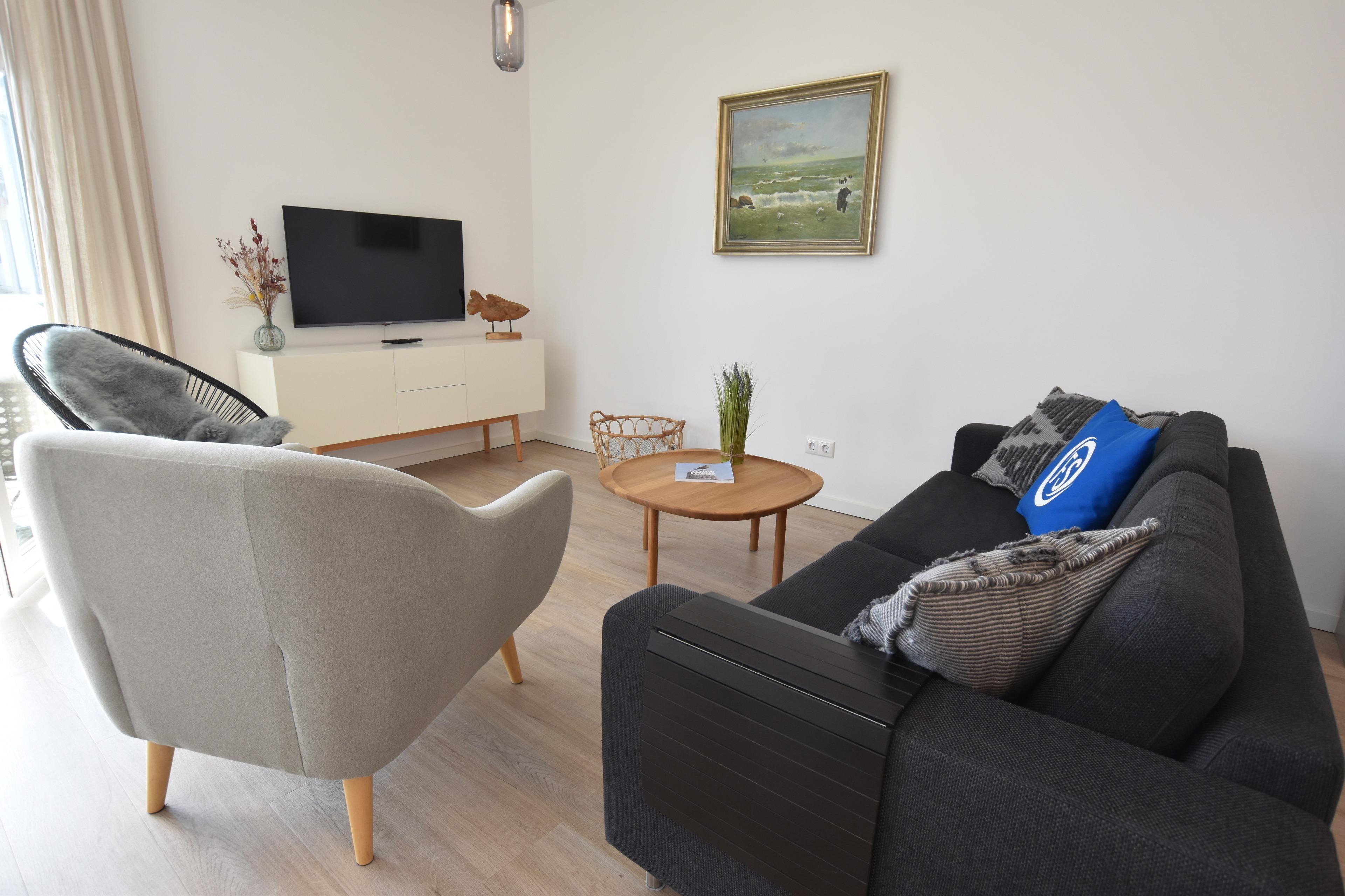 - Wohnzimmer mit gemütlichem Sofabereich und TV, Esstisch mit 4 Stühlen, W-Lan, Außenrollladen, Zugang zum Balkon