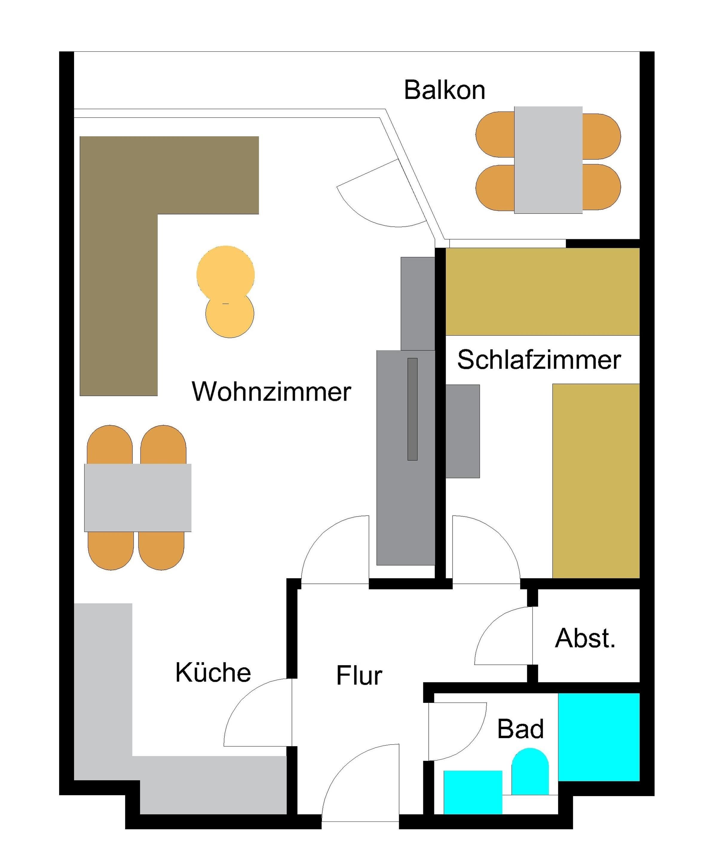 Der Fußboden ist mit hochwertigem Designbelag belegt. Die Einbauküche beinhaltet Backofen mit integrierter Mikrowelle, Kühlschrank mit integriertem Gefrierfach, Geschirrspüler, Kaffeemaschine, Eierkocher, Toaster, Wasserkocher und sehr viel Geschirr. Zwischen Küche und Wohnzimmer gibt es einen Essplatz für 4 Personen. Das gemütliche Sofa mit zwei Leselampen lädt zum Verweilen ein. Sehr einfach ist es zu einem Dauerschläfer-Bett (140 x 200 cm) mit hochwertiger Matratze und Lattenrost ausgeklappt. Großer Bettkasten mit Kissen und Decken. Die Anbauwand beinhaltet eine Vitrine, ein TV Bord mit Fernseher und Stereo-Anlage und einen Kleiderschrank mit ausreichendem Platz zum Hängen und Legen der Kleidung. Der Balkon ist mit Tisch und Stühlen ausgestattet an dem Sie in der Morgensonne frühstücken können.