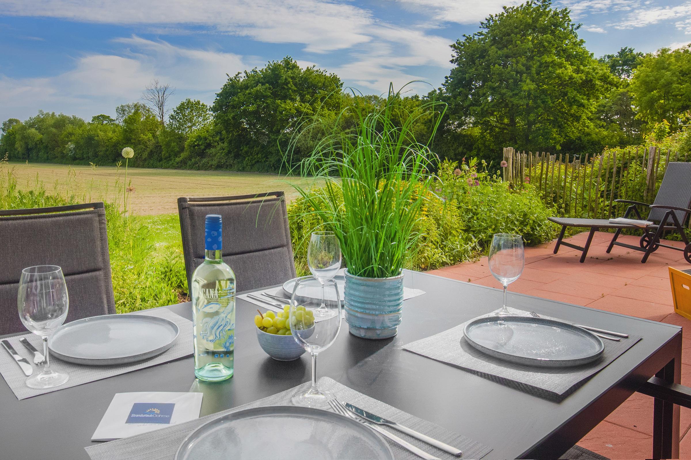 Großzügige Erdgeschoss-Ferienwohnung mit Meerblick, Terrasse und Garten in Dahme, nahe Ostsee und Leuchtturm.