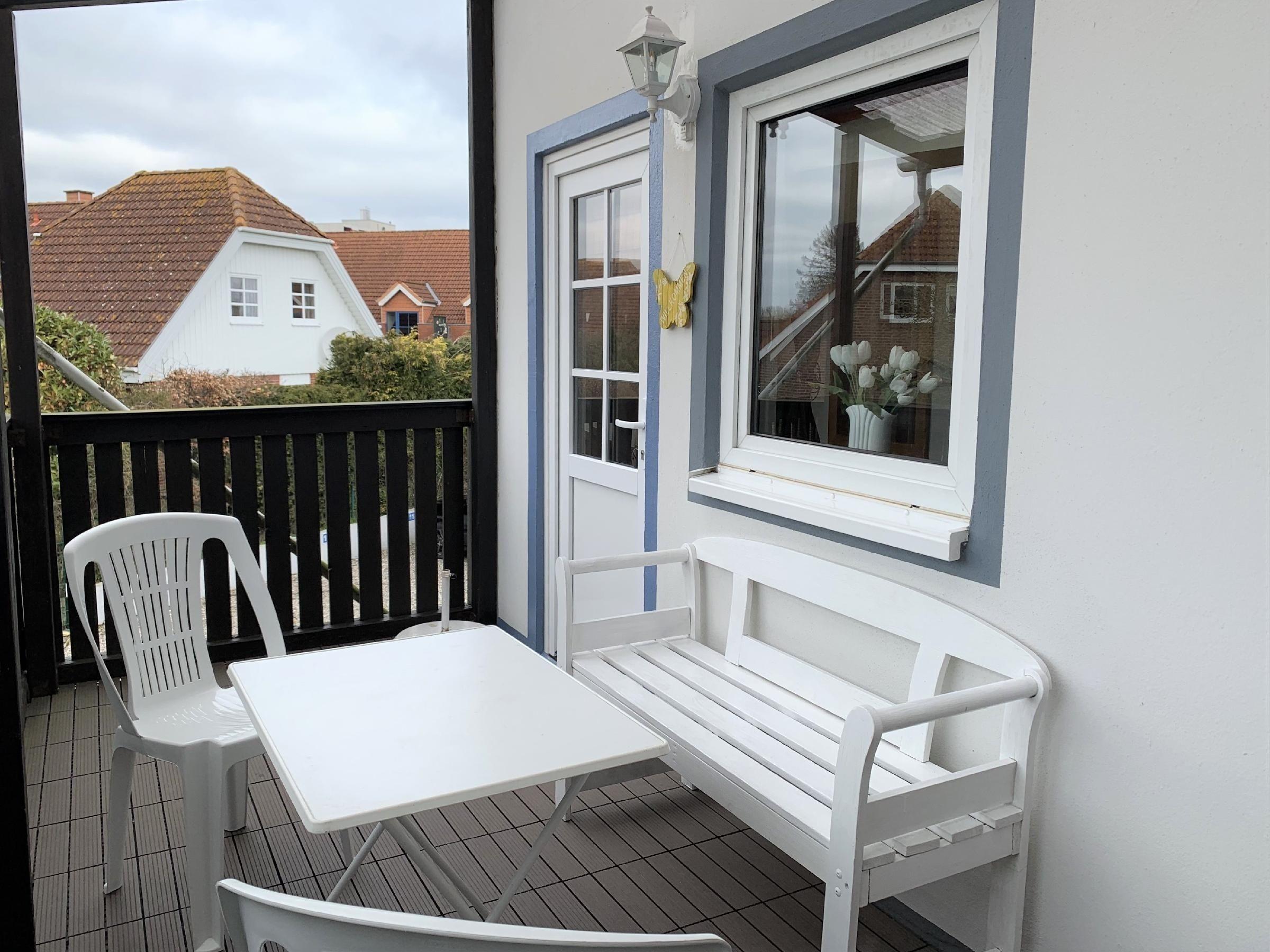 Vom Eingangsbereich aus gelangen Sie zum möblierten Balkon. Es steht Ihnen außerdem ein eigener Stellplatz mit der Nummer 11 direkt beim Haus zur Verfügung.