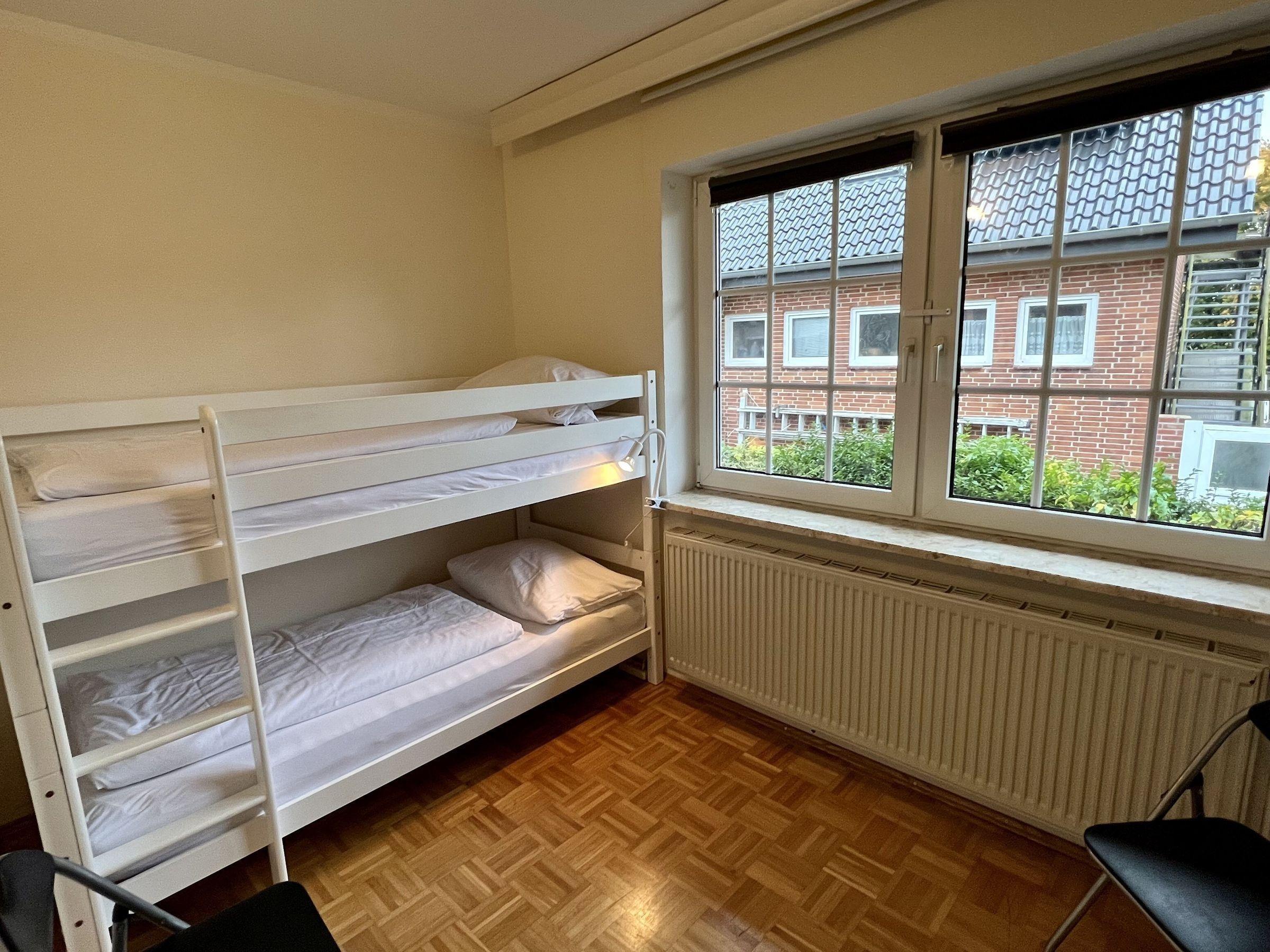 Die Wohnung verfügt über drei Schlafräume, zwei davon mit einem großen Boxspringbett (180x200cm) und viel Platz für das Urlaubsgepäck, das 3. Schlafzimmer bietet Ihnen ein Etagenbett. Für die Kleinsten steht Ihnen ein Babybett aus Holz mit Matratze - ohne Kissen und Decke - bereit. Außerdem gibt es im Wohnzimmer eine ausziehbare Wohnlandschaft, die einer Person Platz zum bequemen Schlaf bietet. Die Küche ist mit allen wichtigen Geräten, wie Spülmaschine, Induktionskochfeld, Backofen, Mikrowelle, Wasserkocher, Toaster und Kaffeemaschine für den täglichen Bedarf ausgestattet. Ein ausziehbarer Tisch mit sechs Stühlen lädt zum Essen, Spielen oder einfach nur zum gemütlichen Beisammensein ein. Es gibt ein großes Bad mit Dusche und Badewanne, WC, zwei Waschbecken und Fenster, sowie ein kleines Bad mit Dusche, einem Waschbecken und WC, ebenfalls mit Fenster.