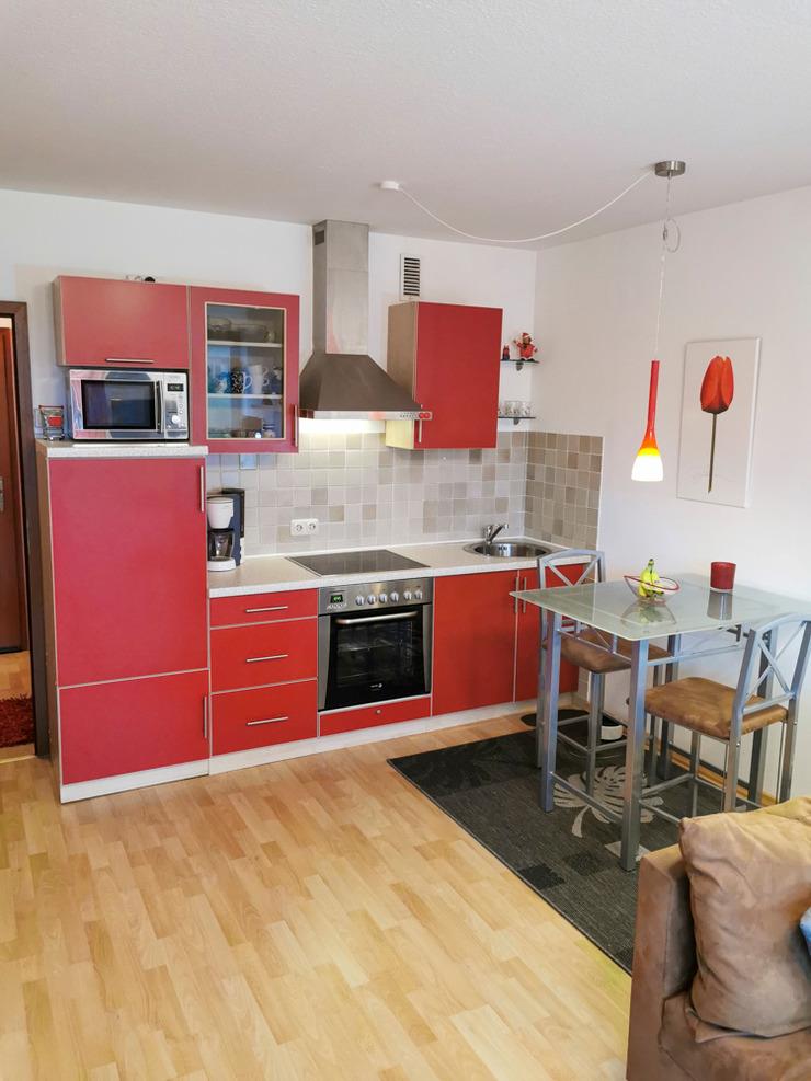Unsere Ferienwohnung ist modern eingerichtet. Vom Balkon genießen Sie den Blick in den Garten. Die Küche bietet ein Cerankochfeld mit Backofen, Kühlschrank mit Gefrierfach und Mikrowelle. Der Wohnbereich verfügt über einen Fernseher, Radio und Elektrokamin. Im Haus befindet sich ein eigener Fahrradkeller. Dort können Sie prima ihre wertvollen Räder abstellen. Im Keller befindet sich auch eine Waschmaschine und ein Wäschetrockner mit Münzeinwurf. Haustiere sind auf Anfrage erlaubt, wir berechnen hierfür eine Extragebühr.