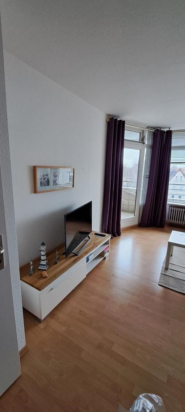 Mit dem Fahrstuhl kommen Sie bequem in die 3. Etage. Hier ist die Ferienwohnung 24. Sie hat einen Wohnschlafraum mit Schlafsofa, Schlafzimmer mit 1 Bett (140x200cm), Küche mit Geschirrspüler und Backofen, Essecke für 4 Personen, Farb-TV mit USB-Anschluss, Dusche, WC.