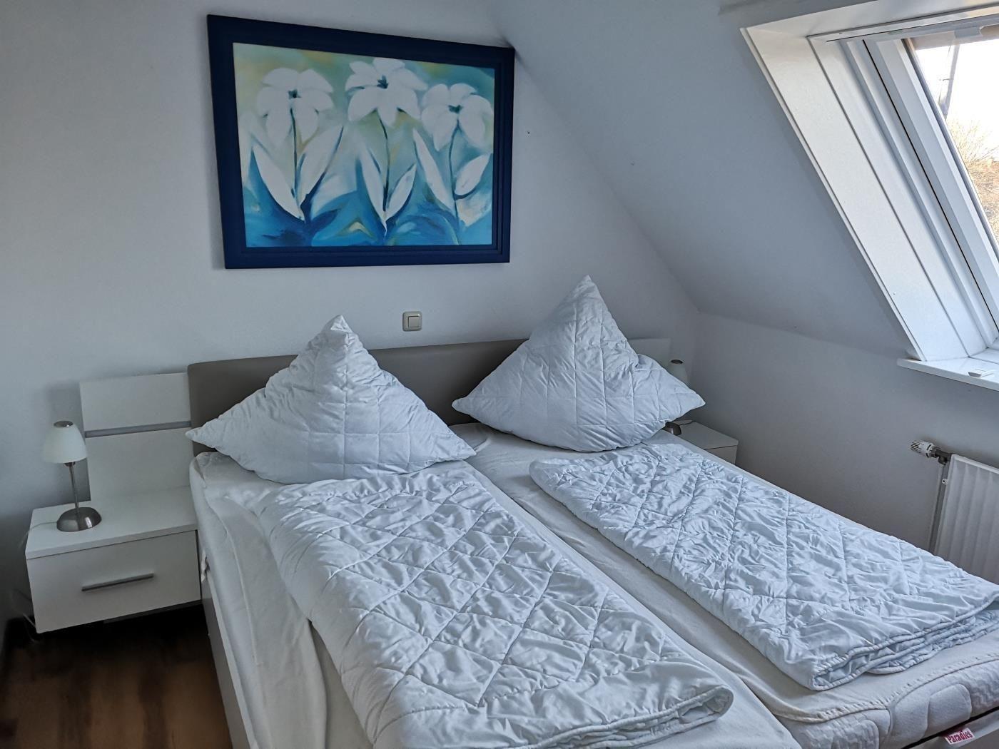 Das Reihenhaus in der Langen Wiese 25 kann mit 6 Personen belegt werden. Das Wohnzimmer bietet eine West-Terrasse mit einem Garten. Es gibt einen Essbereich für 6 Personen und eine gemütliche Sofaecke mit TV. Die Küche ist mit Geschirrspüler und Backofen ausgestattet. Im unteren Gäste-WC steht eine Waschmaschine bereit. Im Obergeschoß befindet sich ein Schlafzimmer mit Doppelbett und ein weiteres Schlafzimmer mit 2 Einzelbetten. Hier befindet sich das Bad mit Dusche. Das Dachgeschoß kann zusätzlich als Schlafzimmer gegen einen Aufpreis genutzt werden. Es steht Ihnen ein 1 PKW-Stellplatz zur Verfügung.