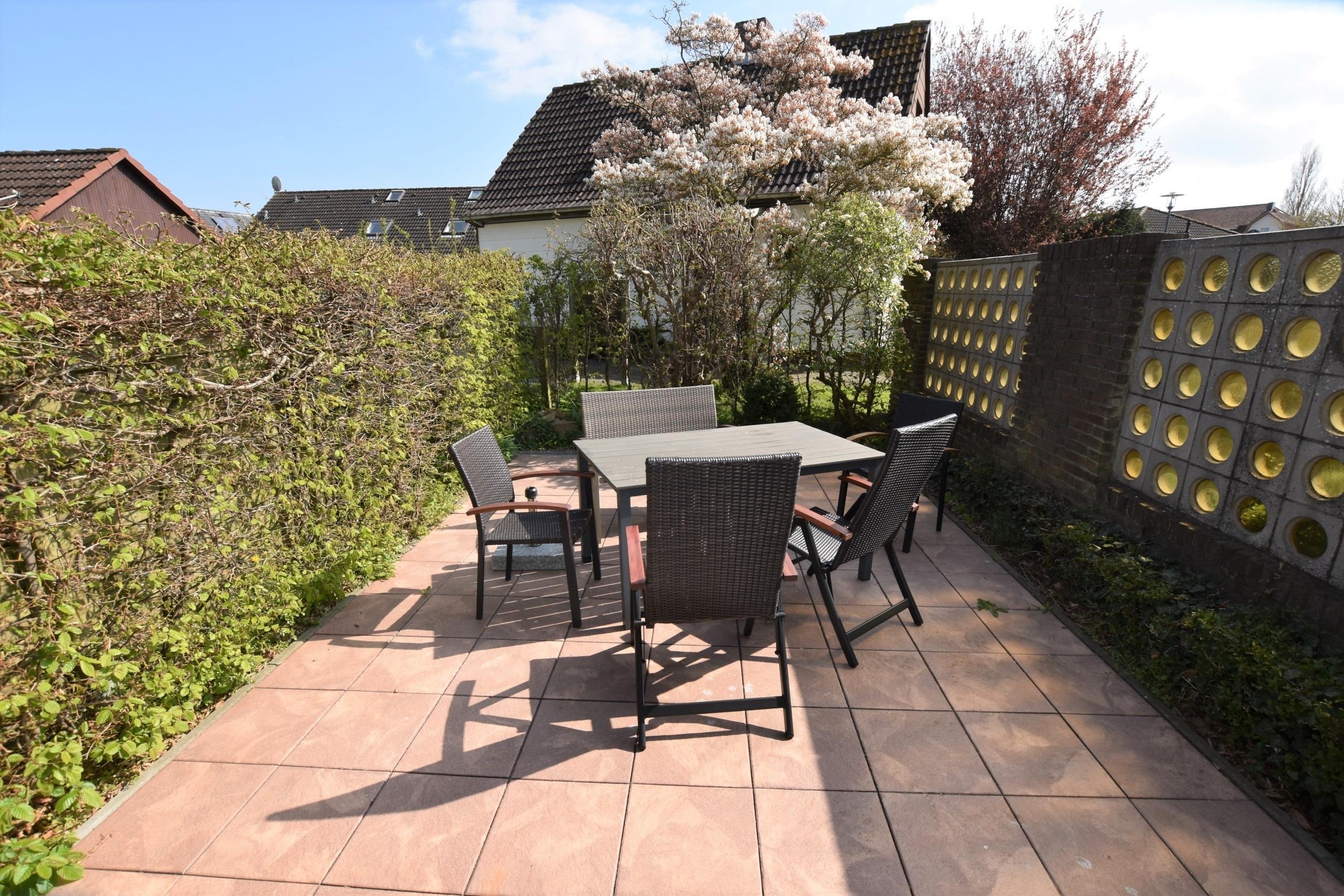 Herzlich Willkommen im Ferienhaus 3013 Marina Sol. Es ist ein ruhig gelegenes Endreihenhaus mit einer Wohnfläche von 70 m² verteilt auf drei Etagen mit drei Zimmern, die Platz für max. 4 Personen (+ Kleinkind) bieten. Zur Nutzfläche gehört eine eingewachsene großzügige Terrasse mit Terrassenmöbeln.