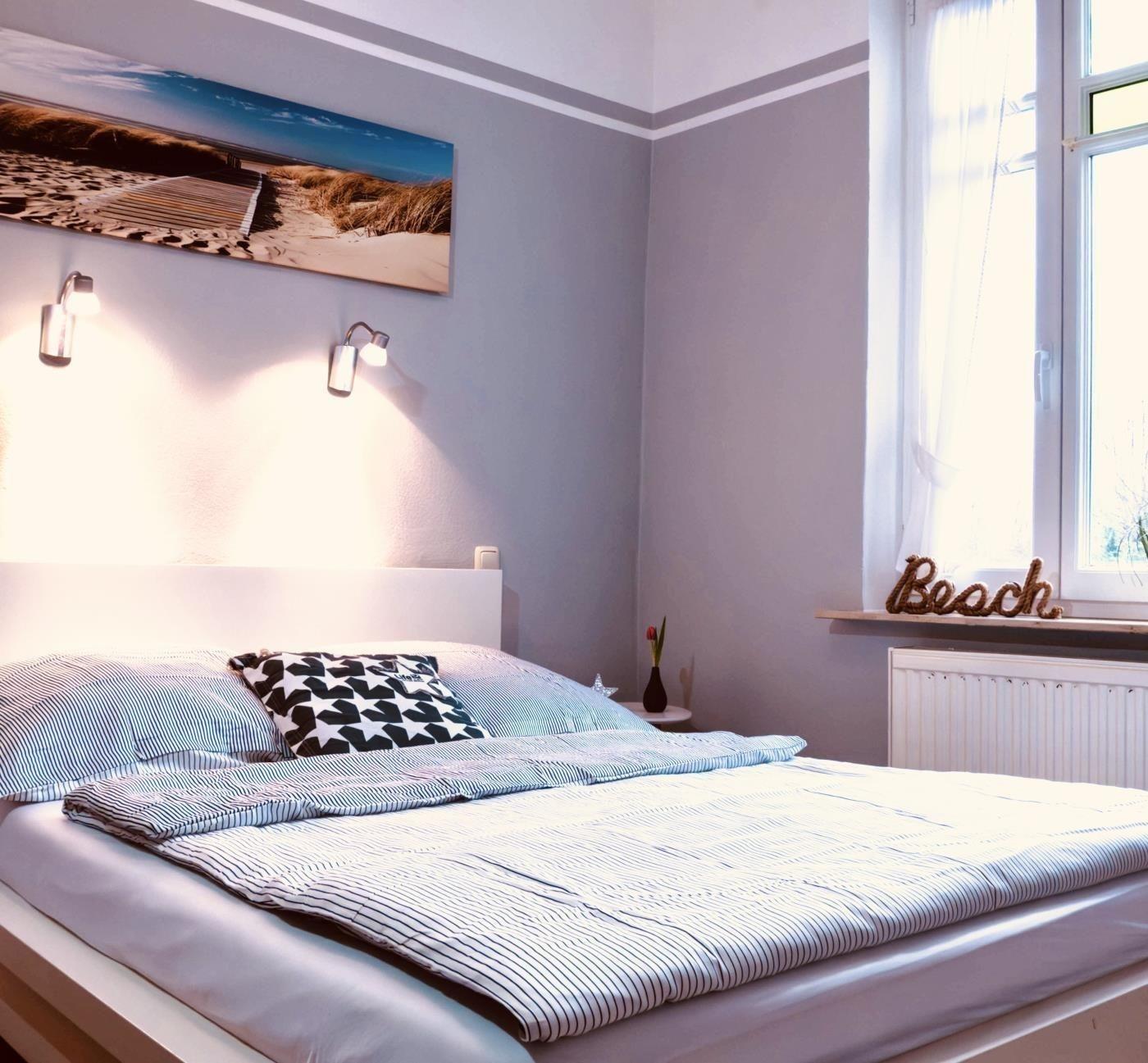 Im 1. Obergeschoss der charmanten Villa Baltica bietet diese neugestaltete Ferienwohnung in unmittelbarer Strandnähe (50m) Platz für 4 Gäste. Der Wohnbereich mit offener, vollausgestatteter Küche (u.a. mit Ceranfeld, Geschirrspüler, Toaster, Kühlschrank und Mikrowelle) bietet sowohl Platz für einen Esstisch mit Stühlen als auch für ein bequemes 3er Sofa. Die zwei getrennten Schlafzimmer mit jeweils einem Doppelbett und geräumigen Kleiderschränken lassen sowohl Familien als auch Pärchen entspannt Urlauben. Für schlechtes Wetter befinden sich im Wohnbereich ein Flachbild TV, Hifi Anlage mit DVD Funktion, eine Auswahl an Büchern und Gesellschaftsspielen. Zur Wohnung gehören auch noch eine Gemeinschaftswaschküche mit Waschmaschine und Trockner, sowie ein Gartenhaus zur gemeinschaftlichen Nutzung.